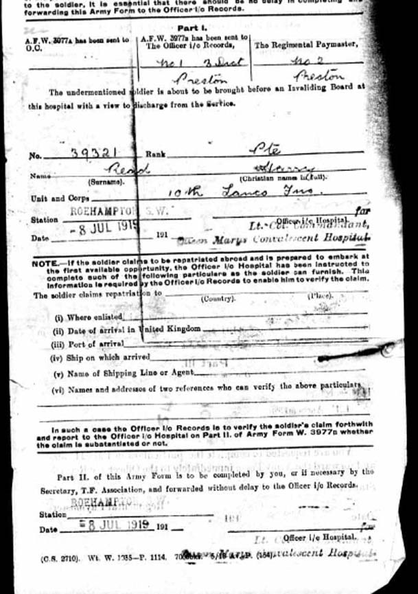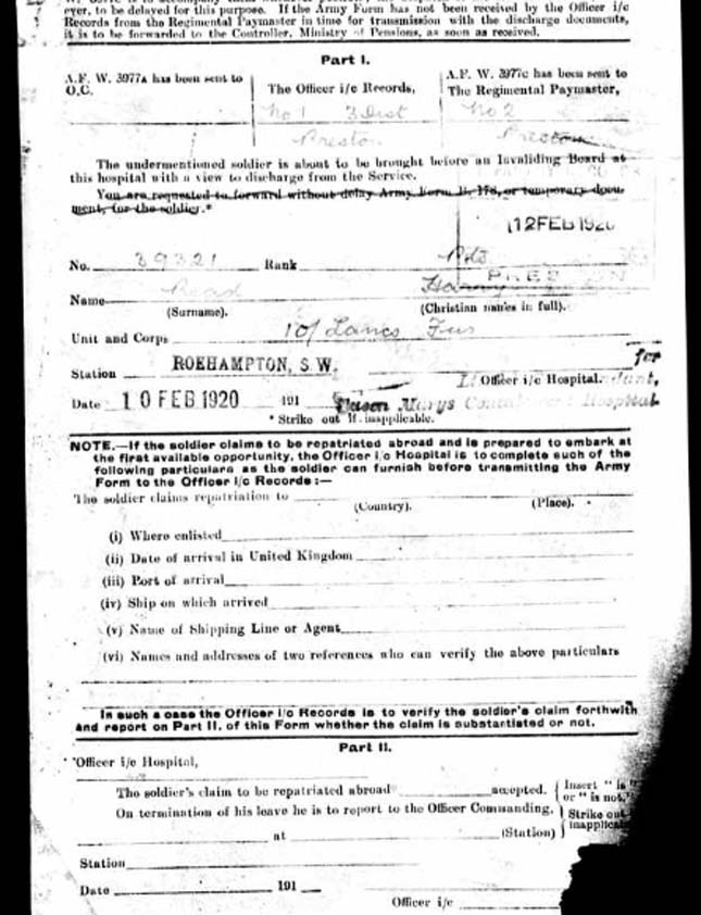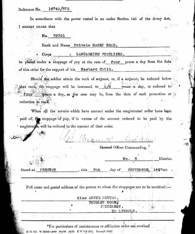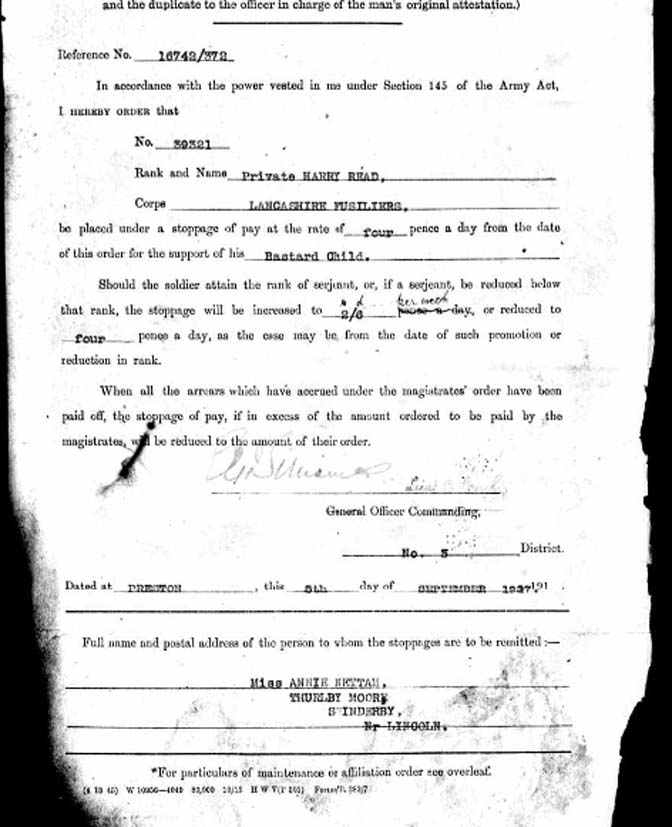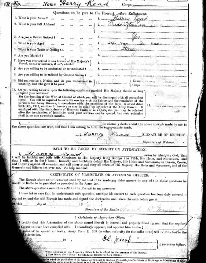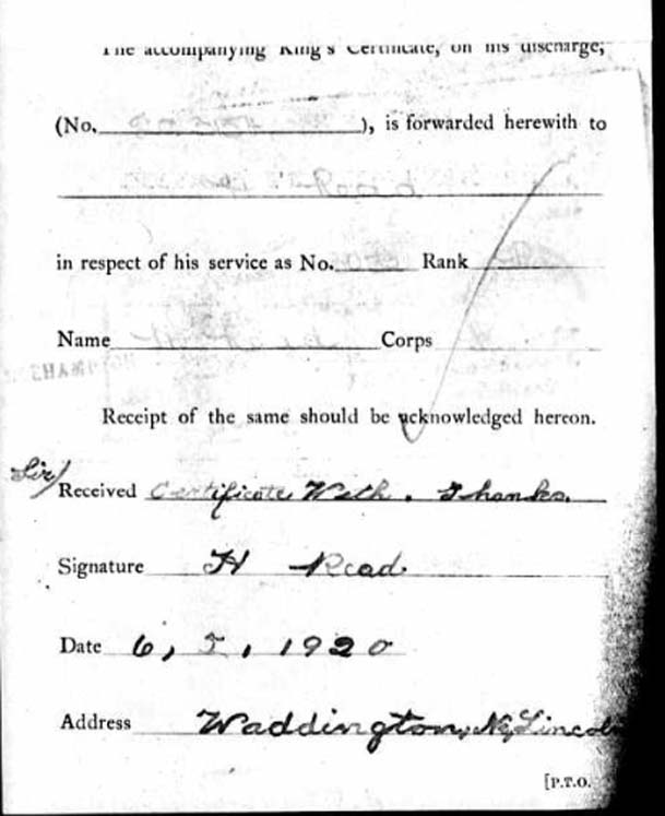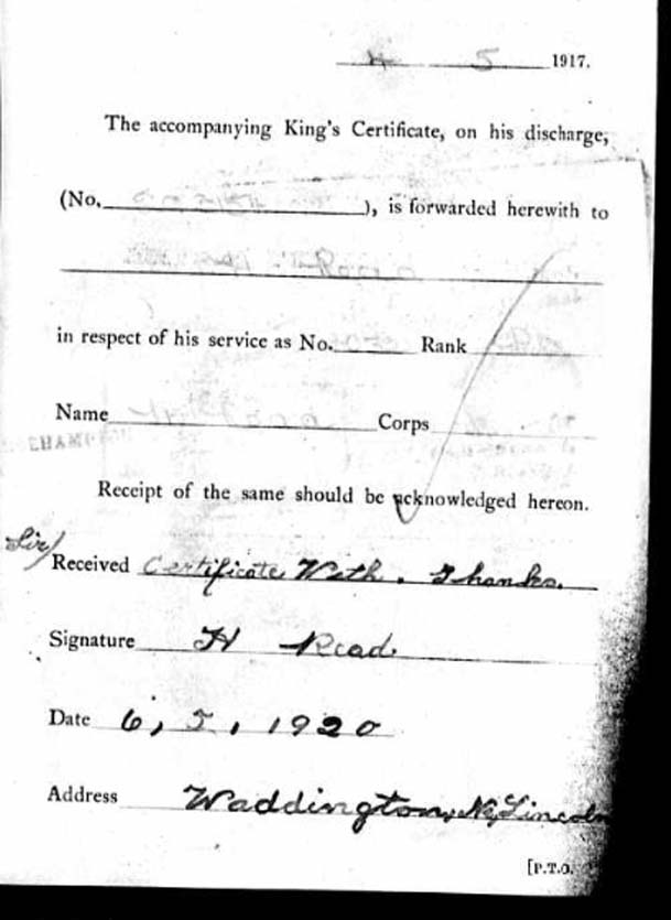 Harry Read DOB 1891, Waddington, Lincs