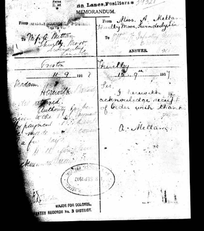 by email. I can confirm now however that his Regimental Number