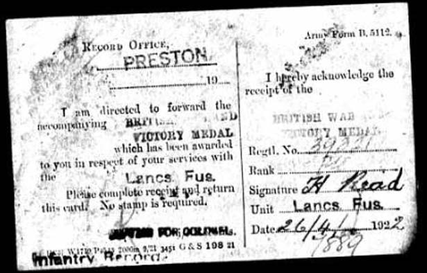 of his Medal Card held by ancestry.com.