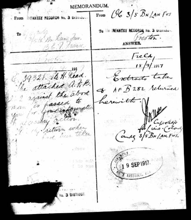 battalions during WWI. The 3/5th, 2/7th and 10th. His name does