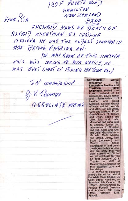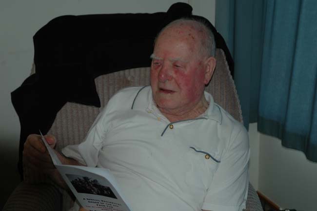 (We sent this card to Alf a card for his 99th birthday with all your messages) ![]() Here is the photo of Alf with his LF card. I read all the messages to him, and he was absolutely thrilled with it; anyone would have thought he'd just been given a million dollars! Please pass Alf's thanks on to everyone. Regards Trevor TREVOR & JULIE SILLS Trevor and Julie Sills visit Alf and a regular basis and pass on our message for us. Thank you Trevor and Julie |