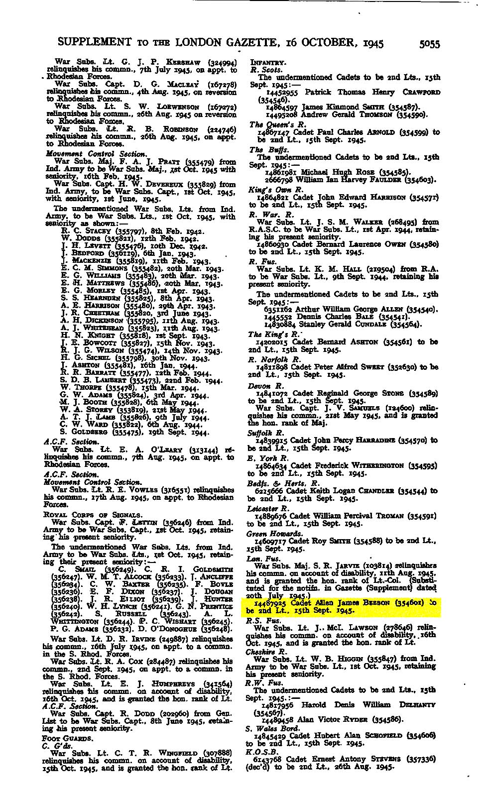 ' for further service in India. On 15th September, 1945 he was Commissioned