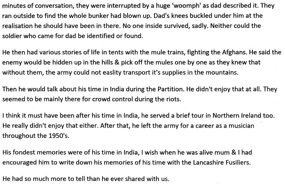 as a 2Lt into the Lancashire Fusiliers and subsequently joined the 1/8th