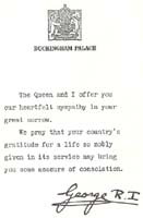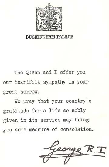 letter of condolence from the King, newspaper cutting telling of his death,
