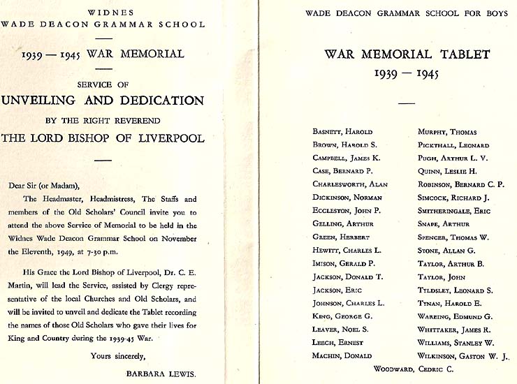 brother born in Sept 1916 in Widnes, Cheshire (formerly Lancashire) and
