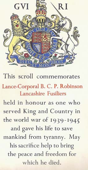 of ![]() Lance Corporal Bernard C. P. Robinson |