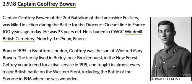 World War hero from Burley, New Forest, who died on 2 September 1918.