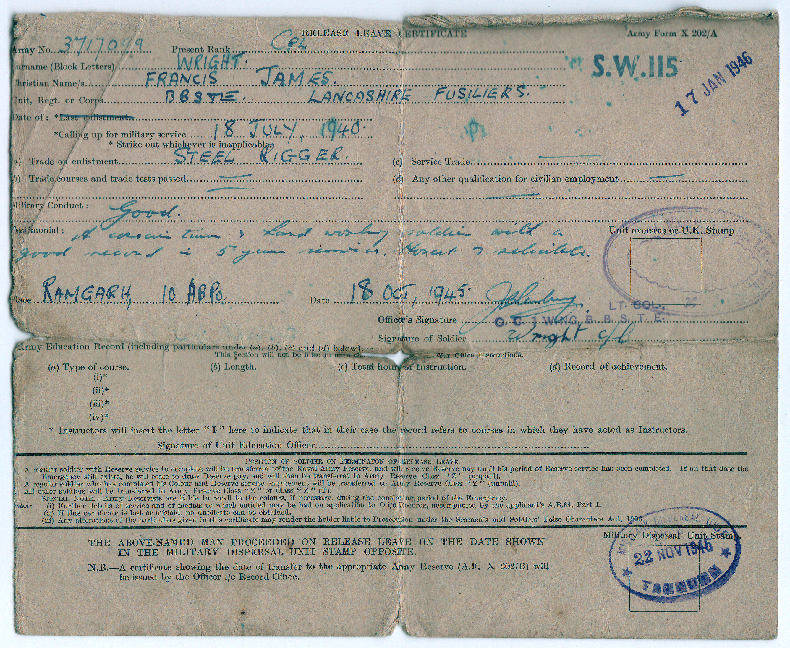 This is the Feature Page of Francis James Wright 1st Bn Lancashire Fusiliers Chindit