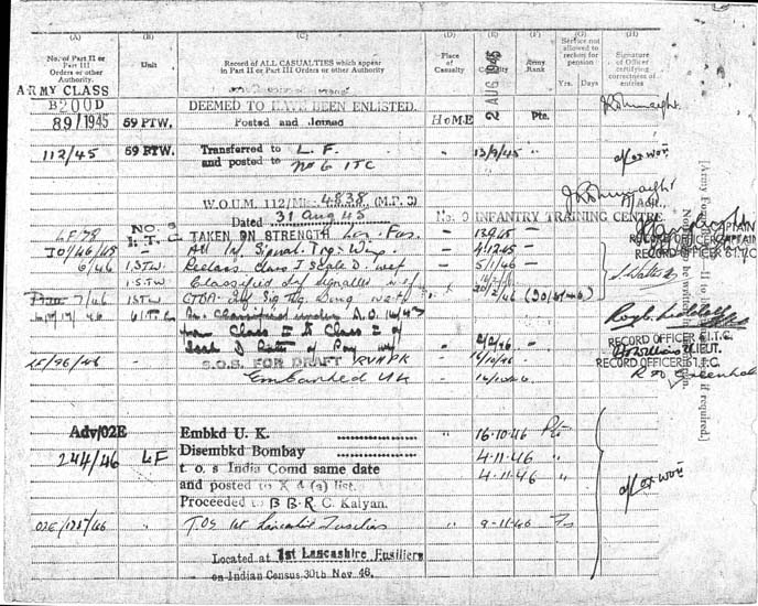 in the Lancashire Fusiliers from 1945 -1948 and was in India with 1st