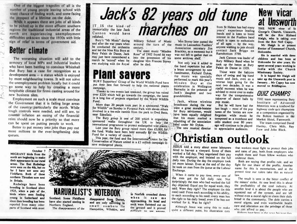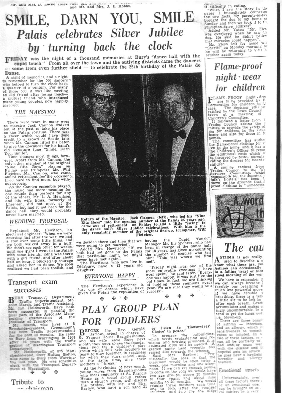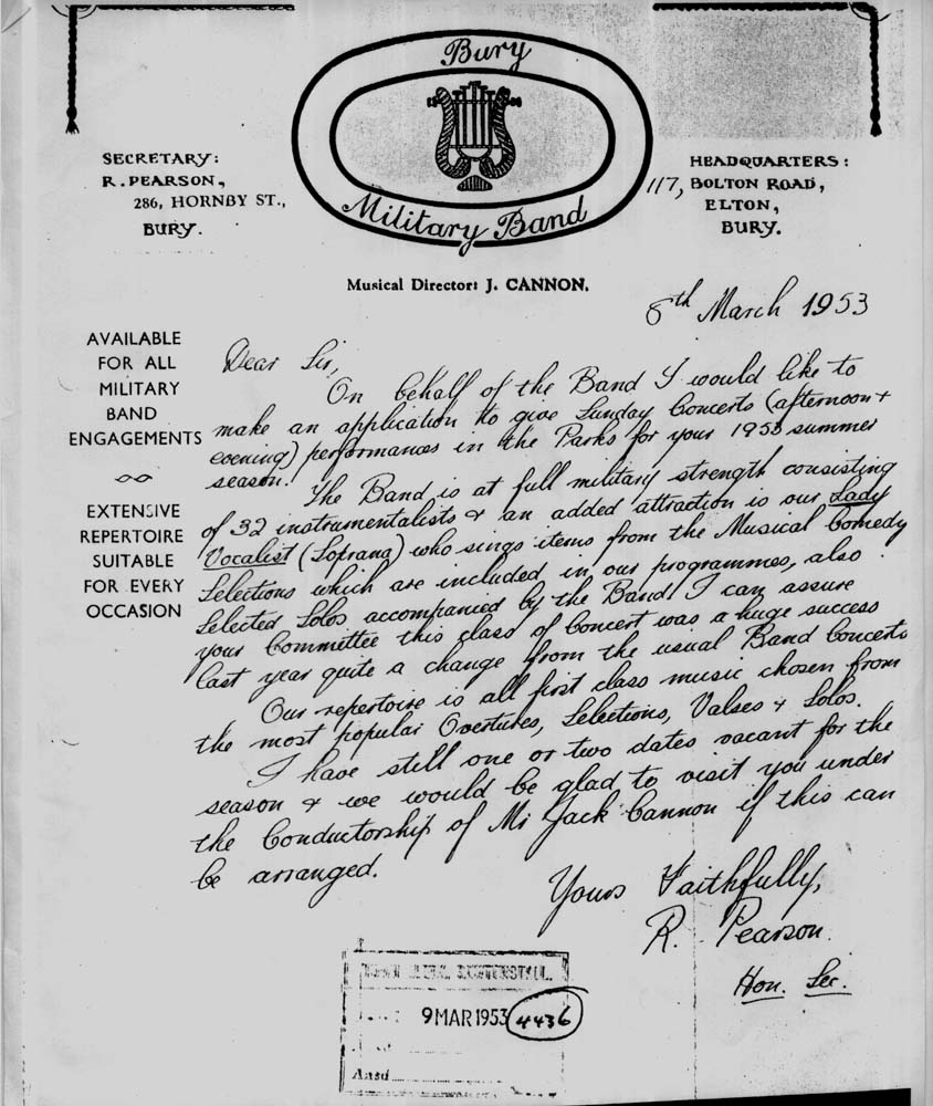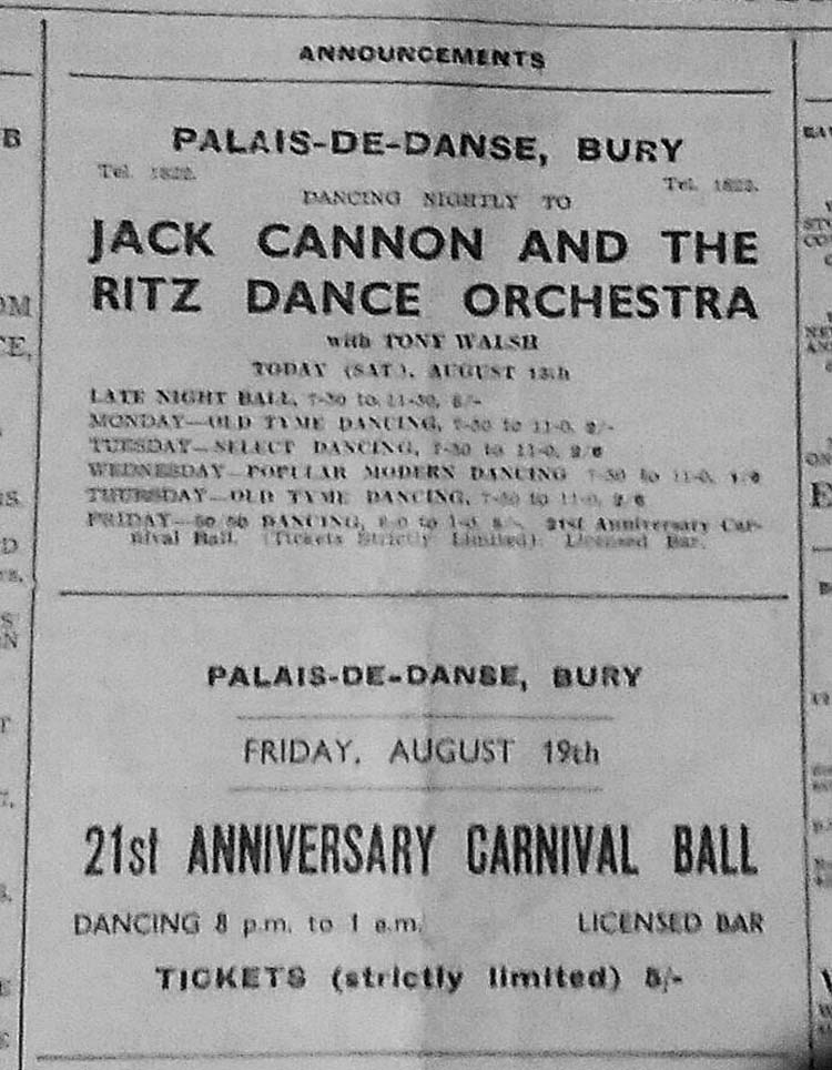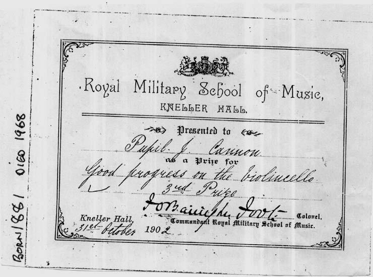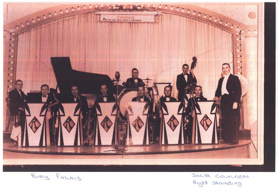 In conversation Fred told Neville about his connection with the Lancashire Fusiliers. Neville then told Fred that his wife Jean Kennedy is the grandaughter of a very well known LF by the name of Jack Cannon, born in 1881. Neville mentioned that Jack Cannon had been presented with a silver plated Tea Pot when he left the Regiment, and that the family still owned this tea pot. Fred phoned Joe Eastwood, the editor of the LF web site at www.lancs-fusiliers.co.uk and asked if it would be of any interest to follow up the story. Joe was keen that Fred get as much detail of Jack Cannon as possible. The following story in pictures is the result of Fred's work. The first thing we found out about Jack was that he attended the Royal Military School of Music at Kneller Hall in 1902 when he was just 21 years of age. In 1902, probably as part of his studies at the Royal Military Academy, Jack wrote a piece of music for 1st Cornet. This piece of music has now been placed into the care of Lt Col Eric Davidson MBE and is with the Fusilier Museum in Bury by the LF web site team. Jack must have enlisted in approximately 1896 as, following his success at Kneller Hall, we know little of Jack's service up to and including WW1, but we do know that he served a short spell as the Bandmaster of a Royal Artillery Unit before serving 23 years with the XX Lancashire Fusiliers. This period of his life culminated in him being the Bandmaster at Wellington Barracks Bury at the end of WW1. He then went on to serve in the TA with the 5th Battalion the XX Lancashire Fusiliers as Musical director and Conductor of the Bury Military Band. By 1941 he had created a 9 man Dance band which went by the name of "The Nine Ritz Boys" Their theme tune was "Smile, Darn you, Smile" In 1939 Jack became the conductor of music at the Bury Palais De Danse. ![]() In 1941 The Nine Ritz Boys broadcast to the Armed Forces from a Manchester Studio. In 1953 Jack is listed as the Musical Director of the Bury Military Band . Many many bookings were played at the Bury Palais throughout the 50s and 60s. Jack's Military Band played many engagements in parks and other open air venues across Lancashire for over 25 years. Jack retired in 1964 .
