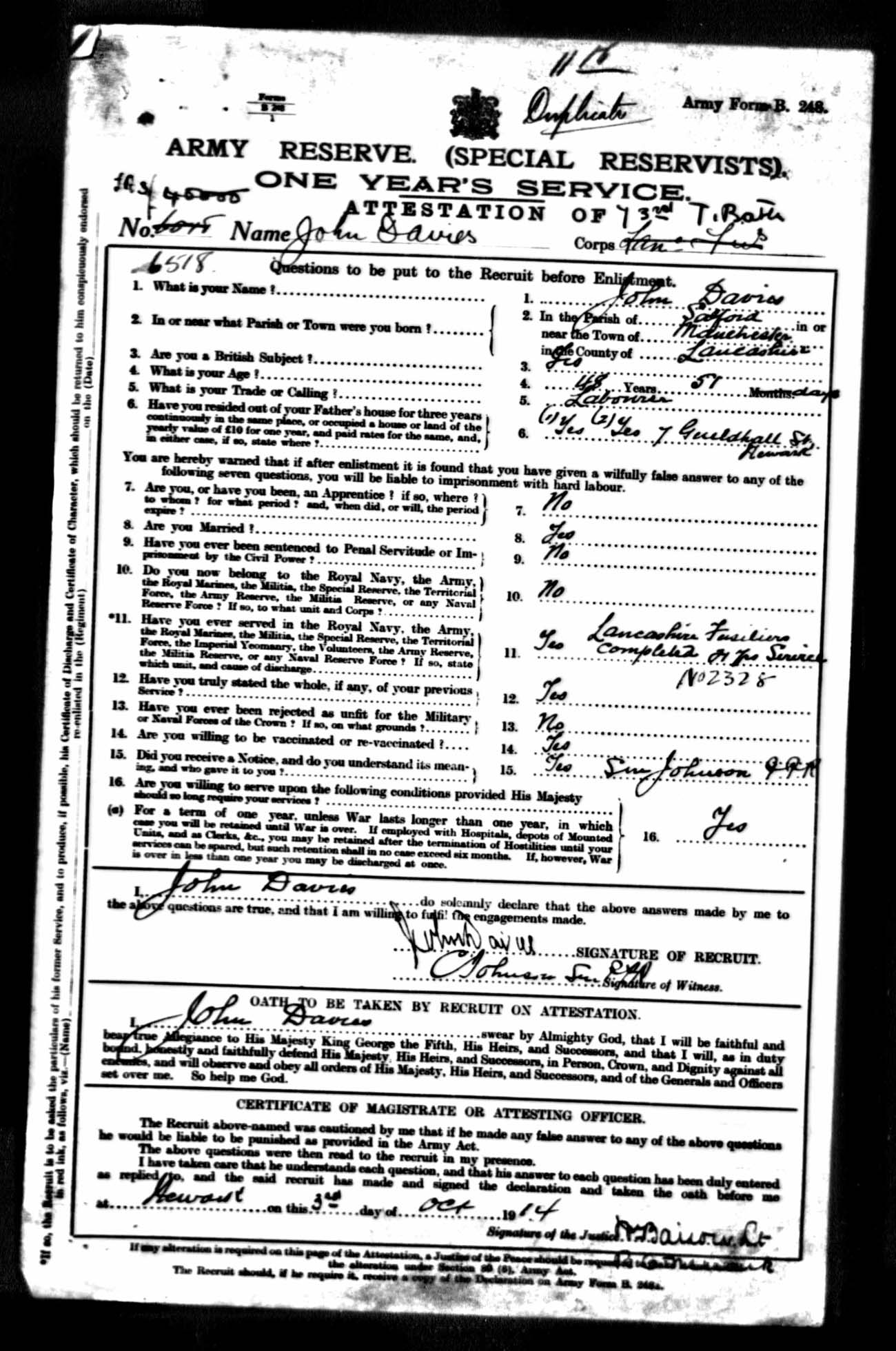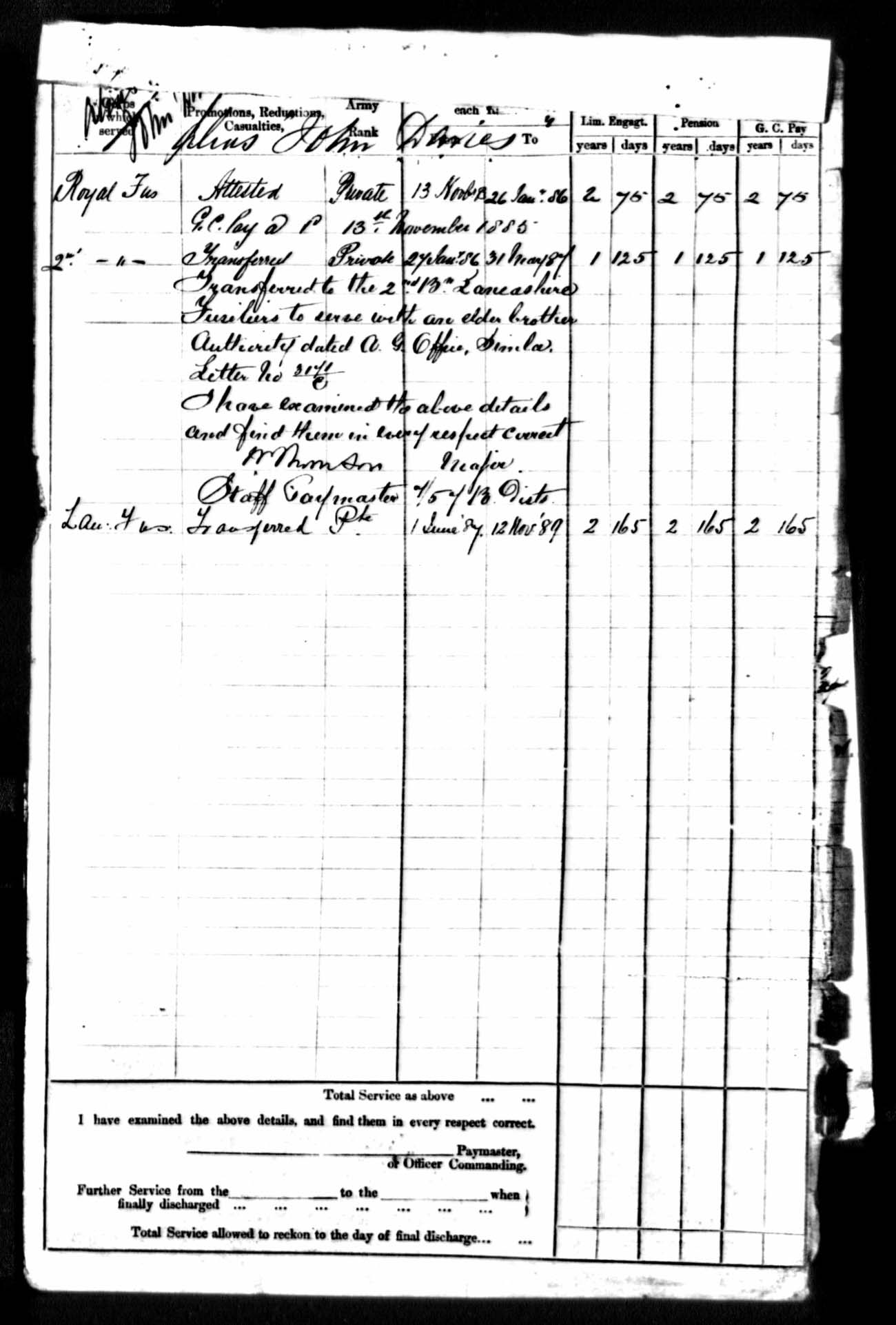 the Royal Fusiliers and then transferred to the 2nd Bn Lancashire Fusiliers,