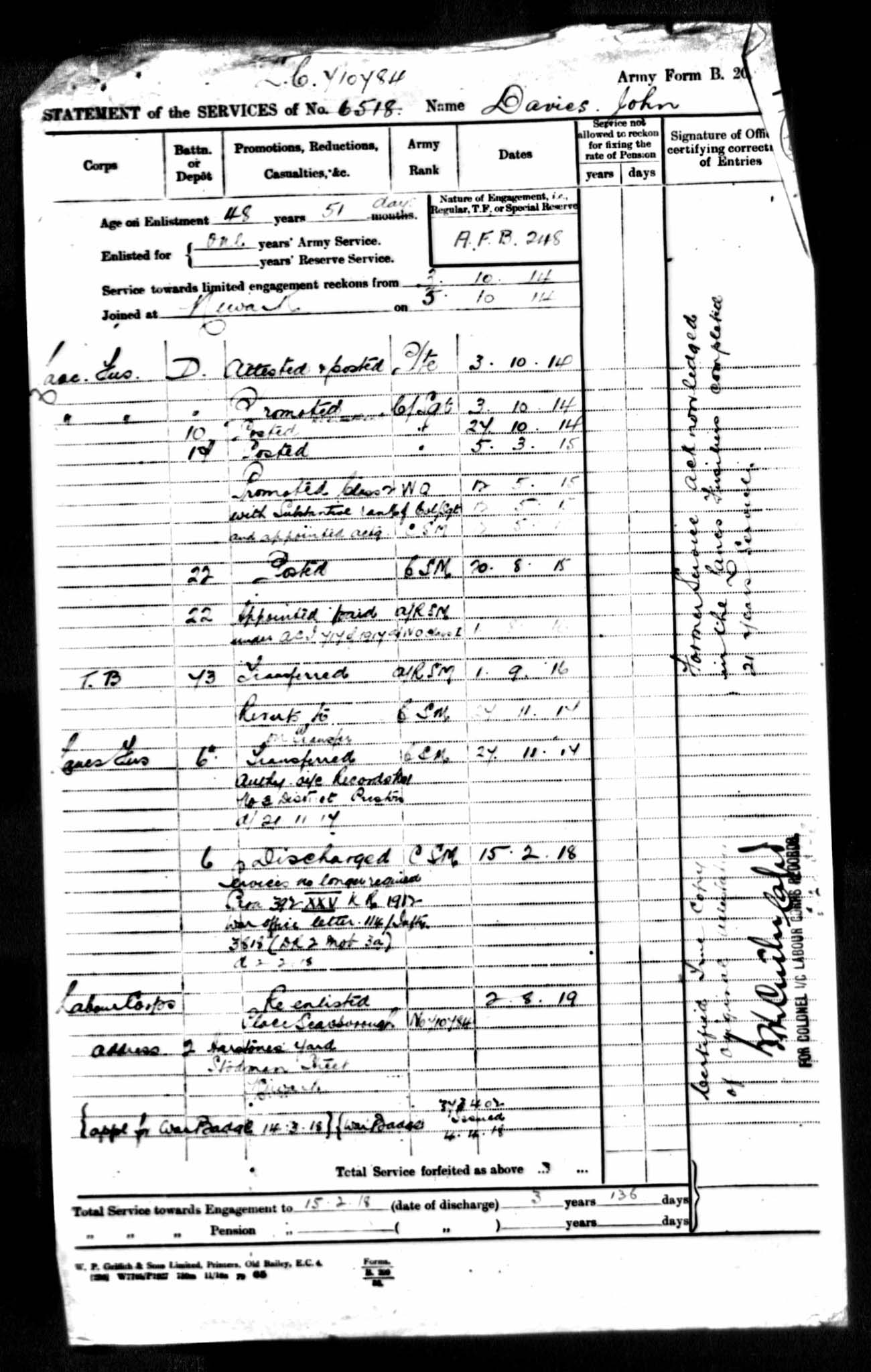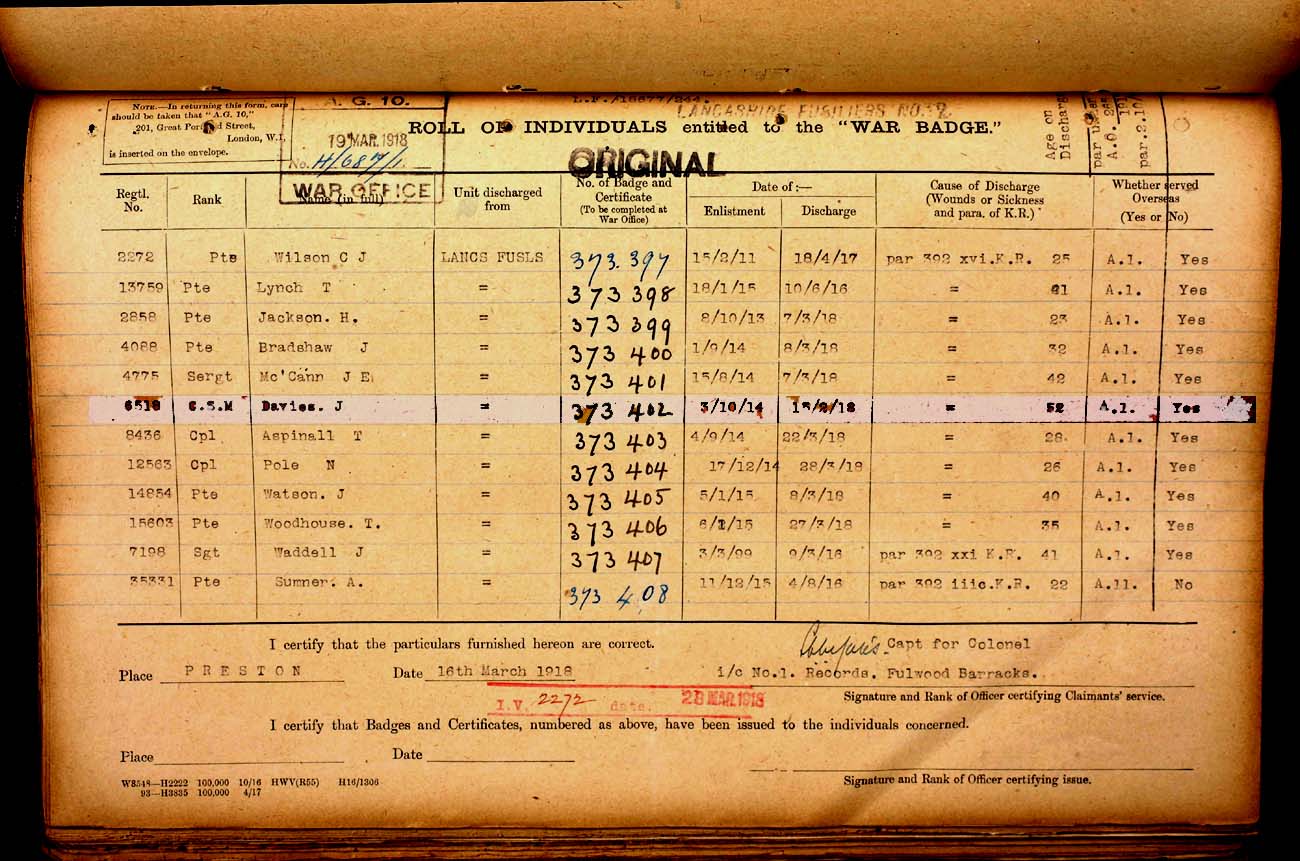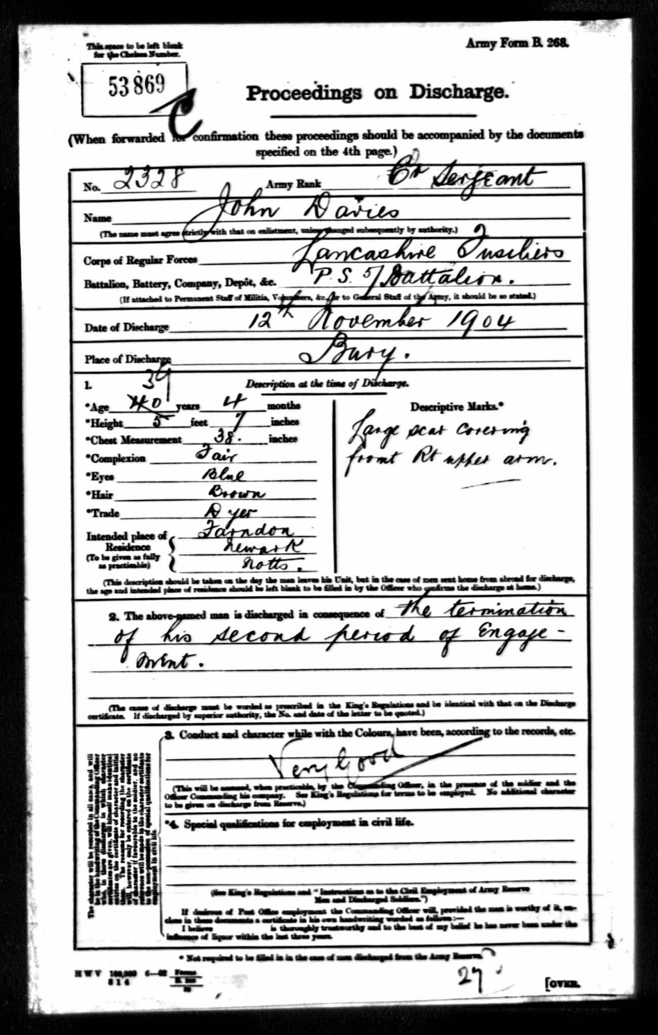 6518 CSM John Davies ( Alias John Brown) Royal Fusilier and Lancashire Fusiliers ![]() |
