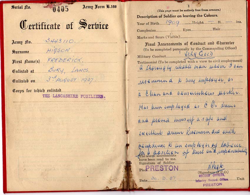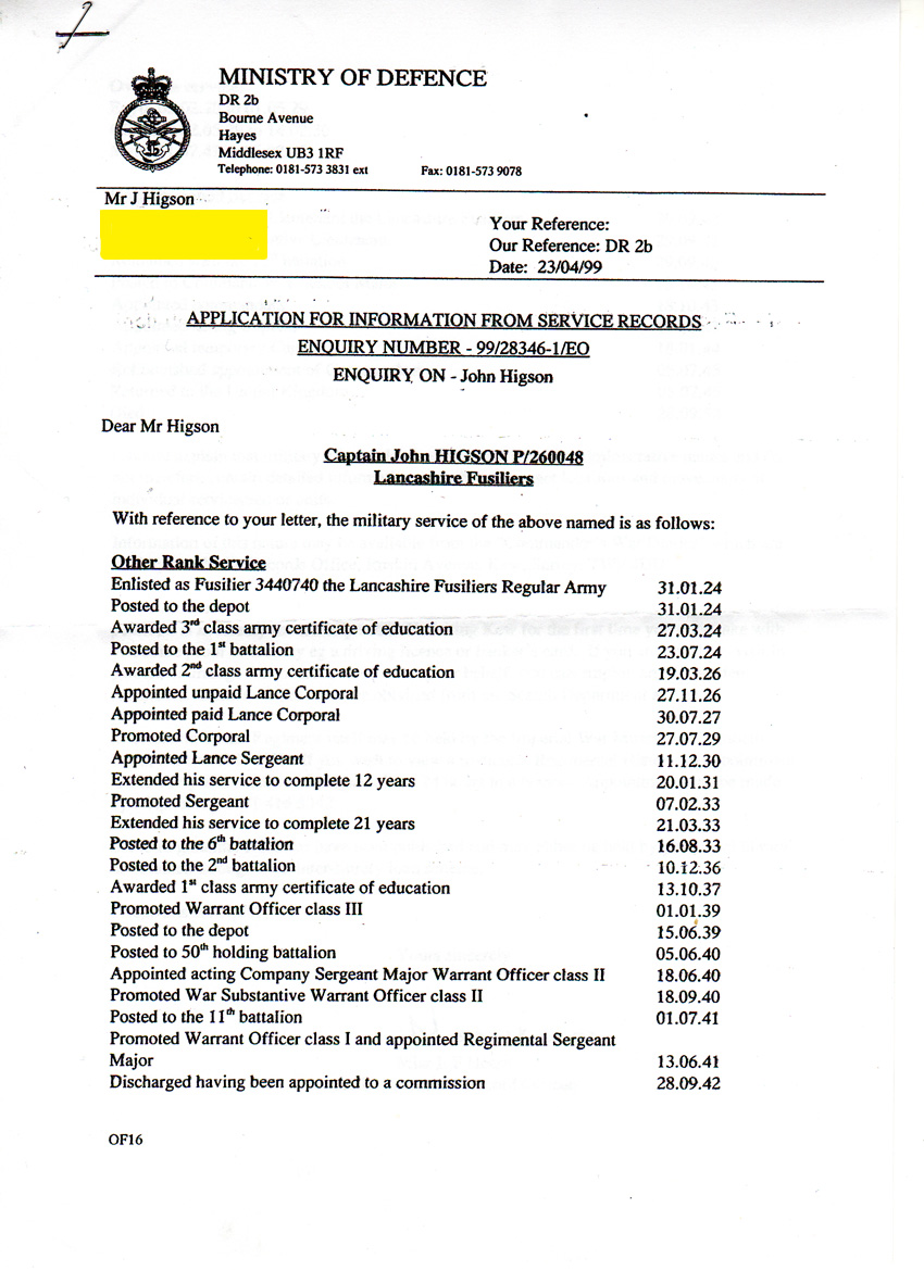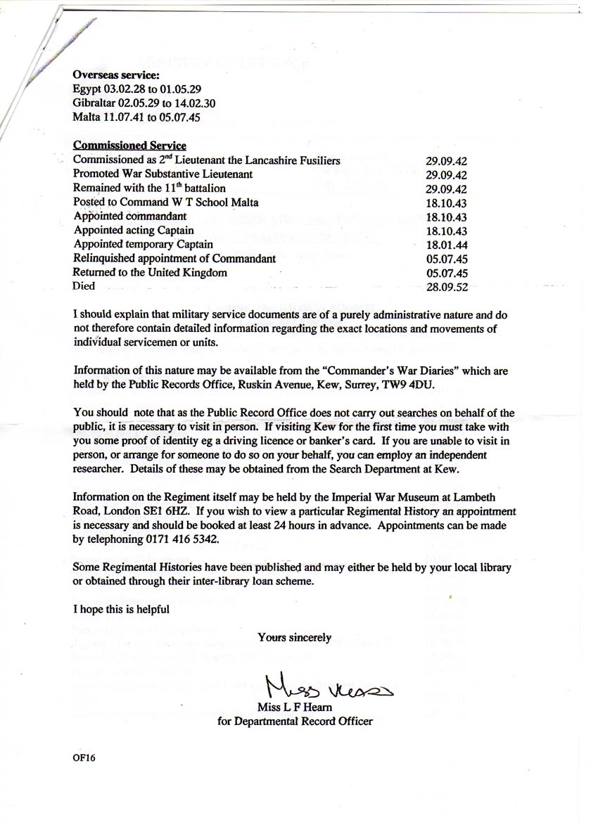 John joined the LF's in 1924 and was Commissioned into the 11th Bn in 1942 John served in the 1st Bn , 2nd Bn , 6th Bn , 50th Holding Bn and 11th Bn