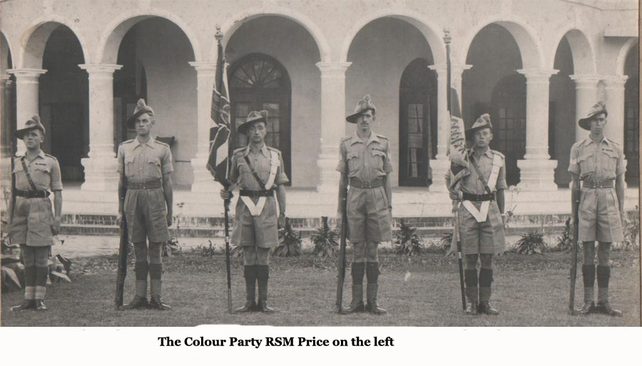 NB: Compilers note - RSM Price is known to have had specially made for himself a beautiful uniform made out of the finest silk!!! The Major concerned is known to have 'departed' the battalion not long after this particular incident