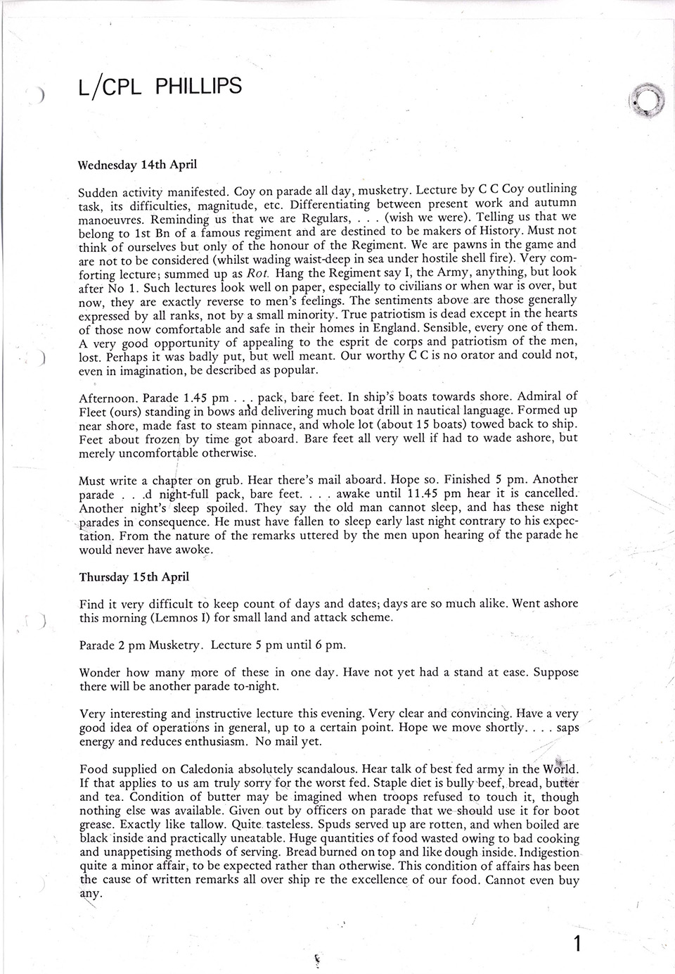 The Feature Page of 1181 L/Cpl Milner Phillips Diary of the lead up to Gallipoli 1915