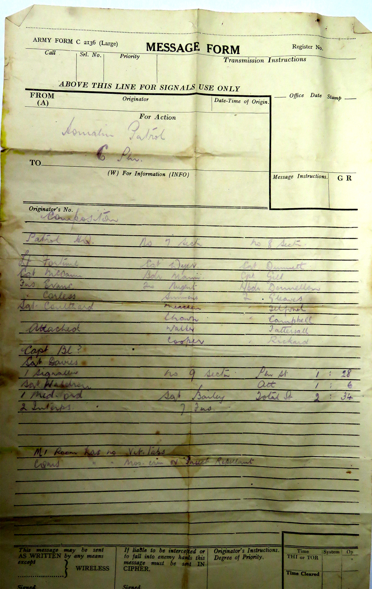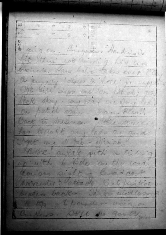 Box'. First night 'A' Coy (Company) 'co it'.