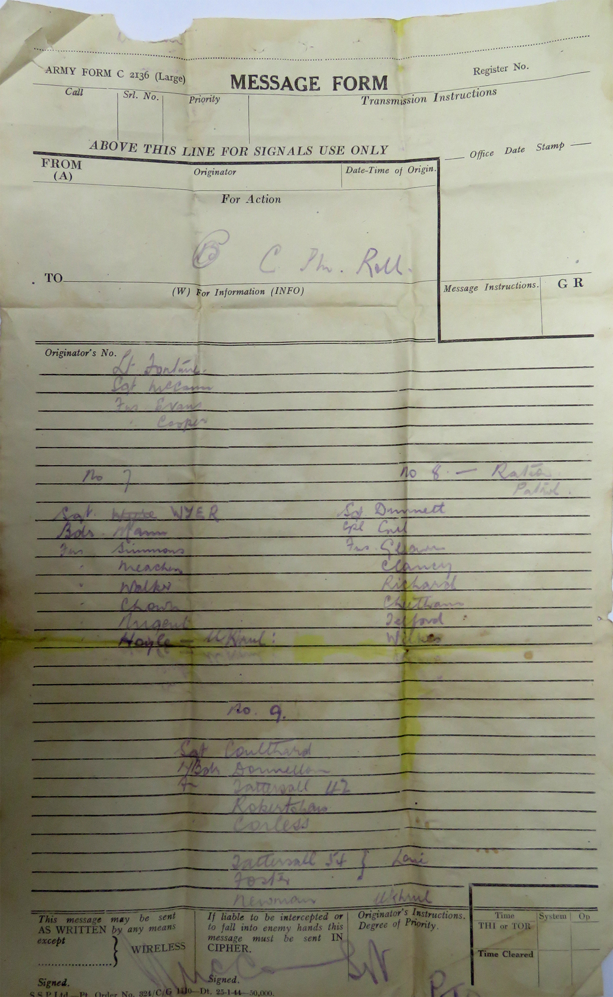 Jap casualties. Further orders &
