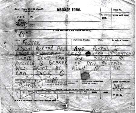 an urgent request for mortar ammo and petrol indicating that the bearer