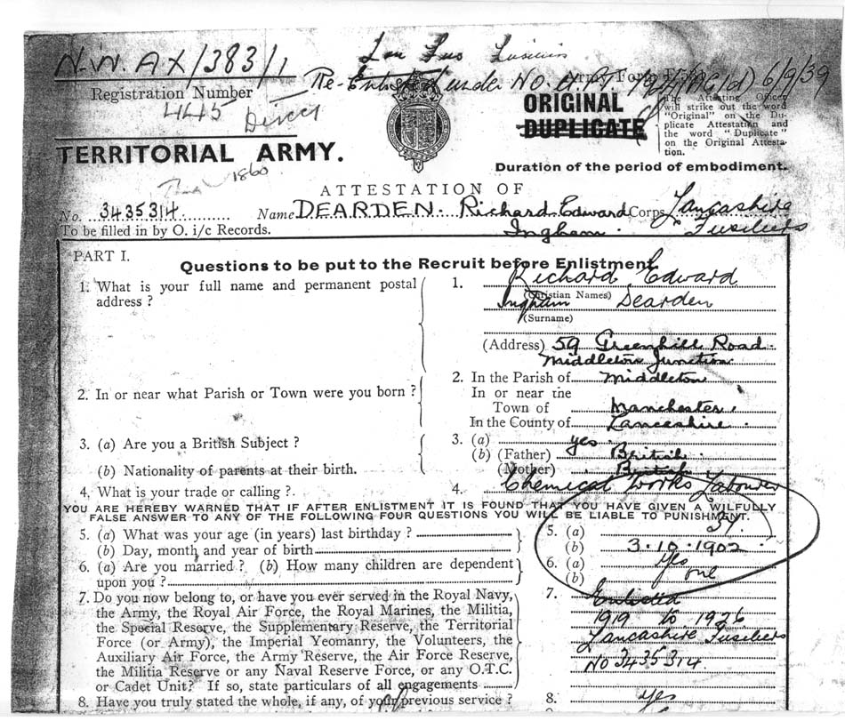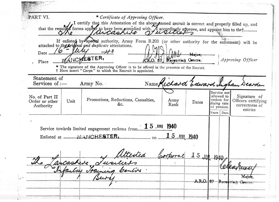 WW2 he duly enlisted at Manchester recruitment centre for the duration
