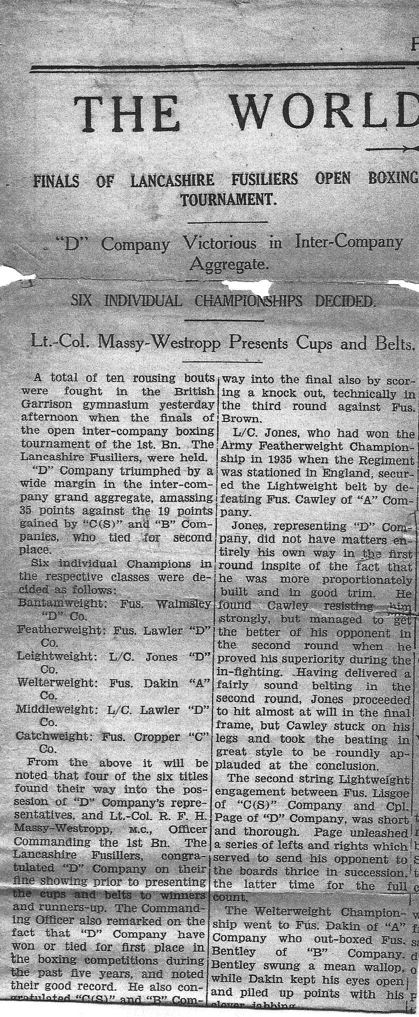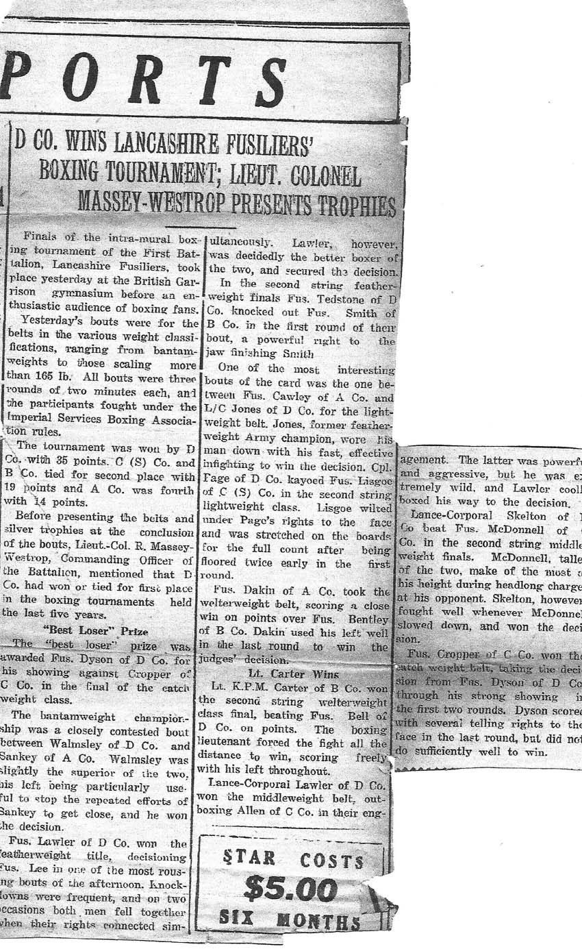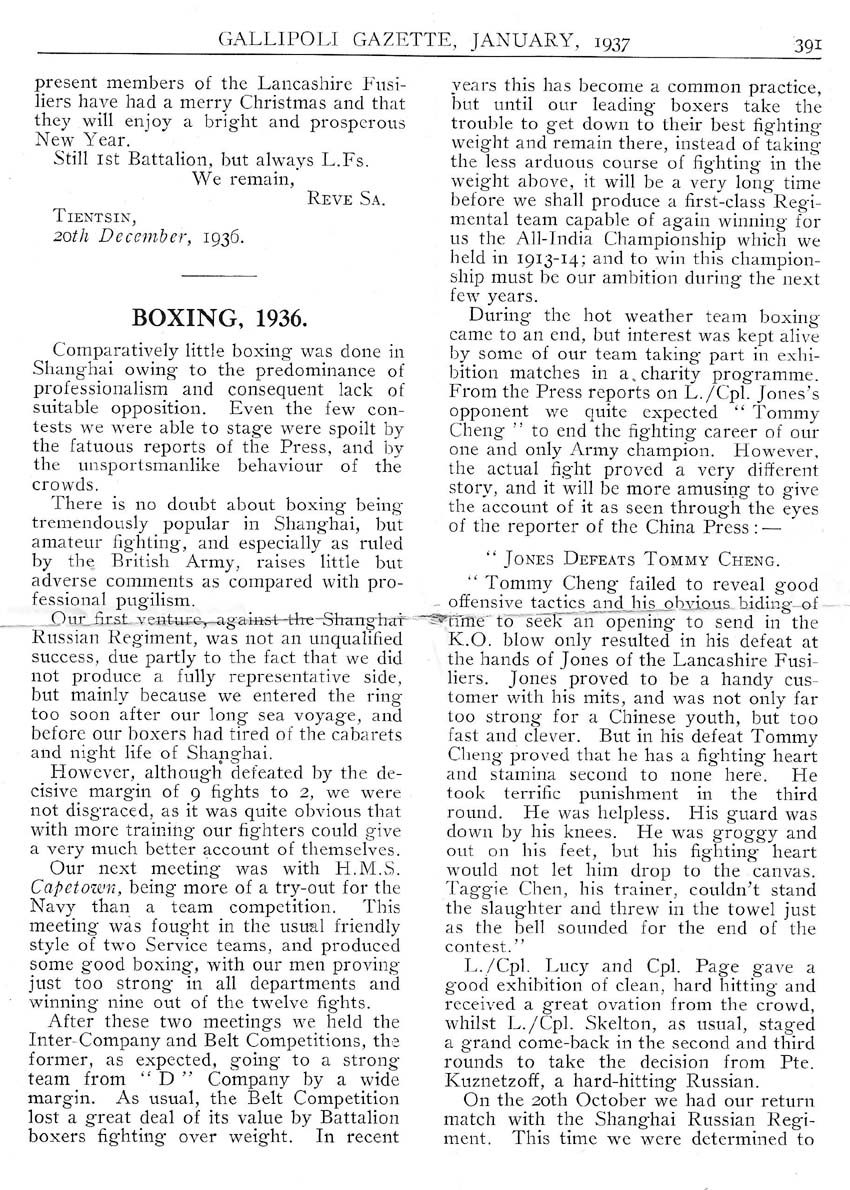 The XX Lancashire Fusiliers Served in China 1936