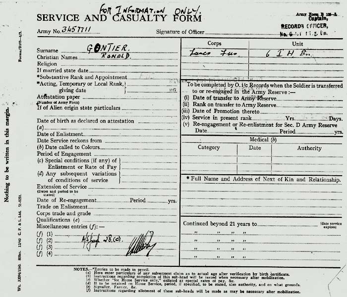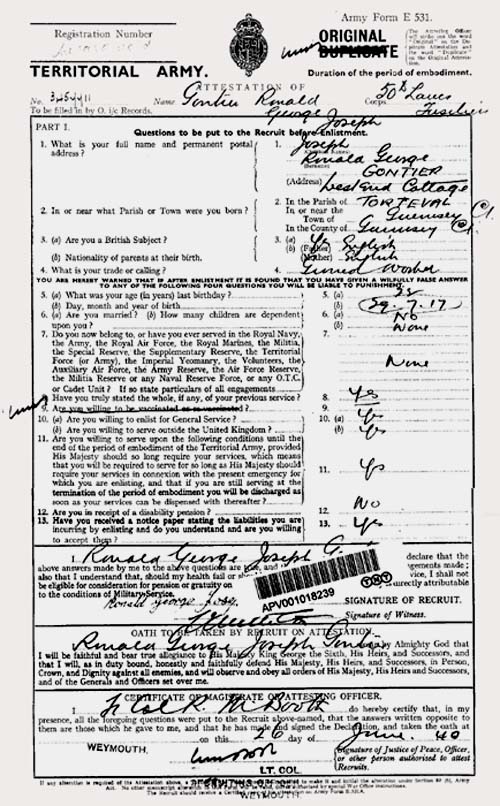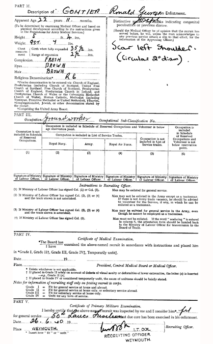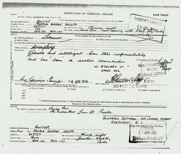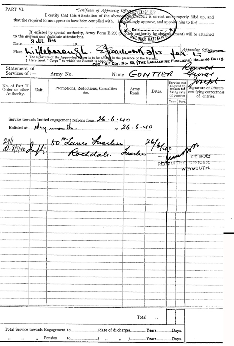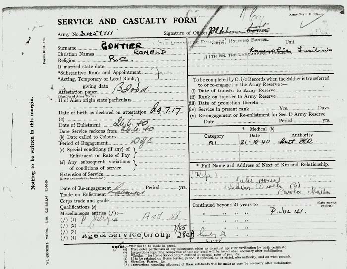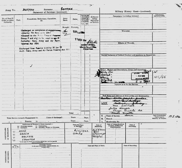 Fusilier Gontier served with the heroic Lancashire Fusiliers in Malta during the seige by German forces in WW2, Italy and Germany.