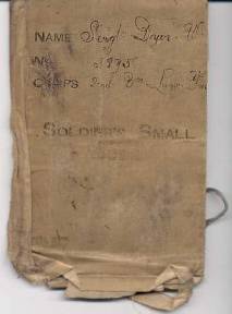 on the cover is his rank, name, ID number (3275) and Corps.