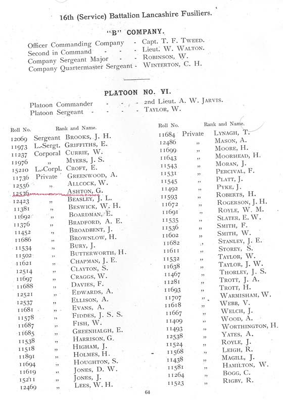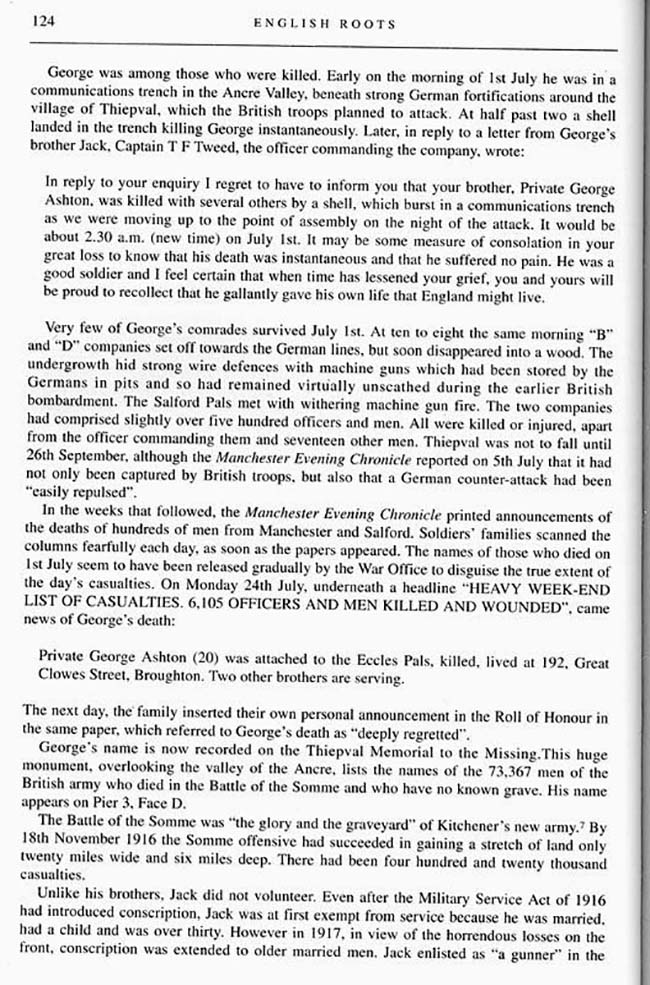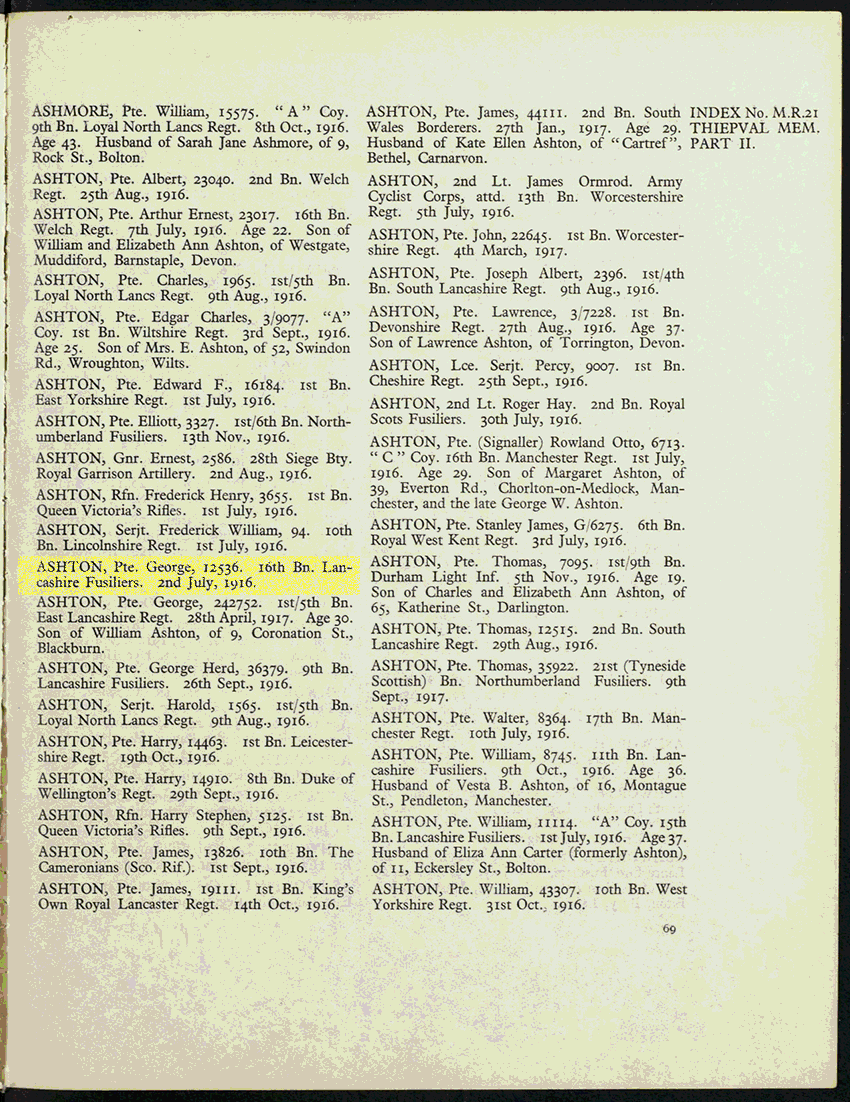 The feature page of George Ashton 16th Bn Lancashire Fusiliers