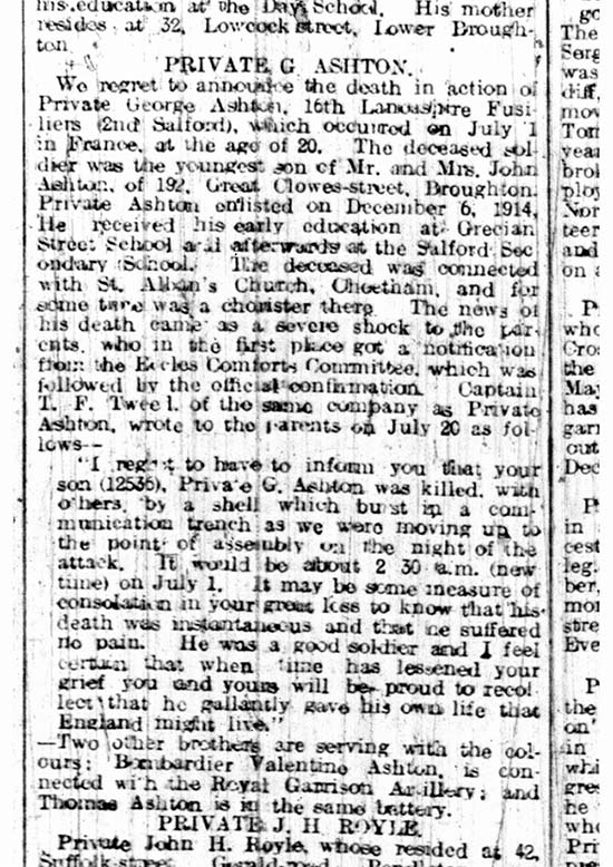 Son of John and Sarah E. Ashton, of 192 Great Clowes St., Broughton, Lancs.
