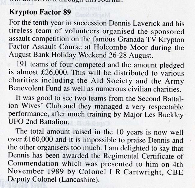 Fusiliers Krypton Factor Competition 1980 to 1994 |