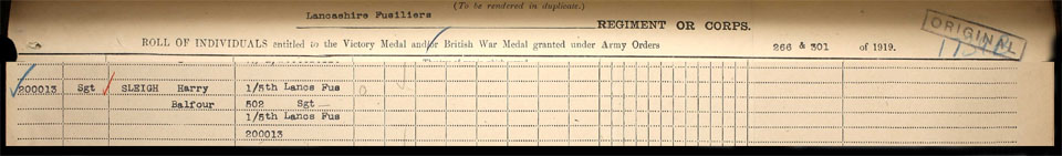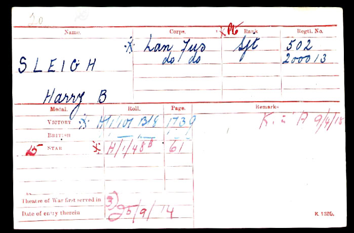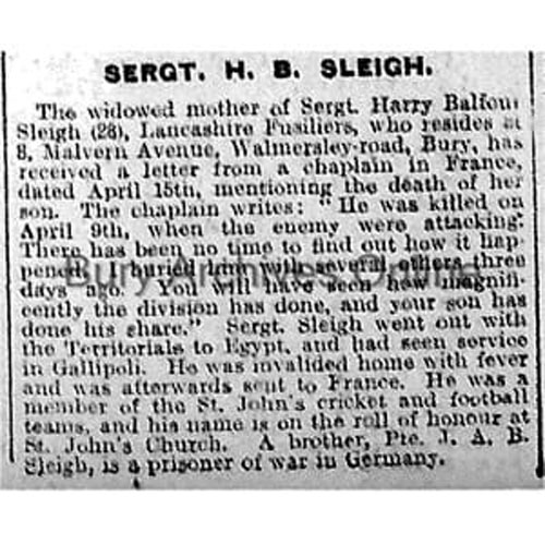 The next of kin for Harry Balfour Sleigh would have been sent this death