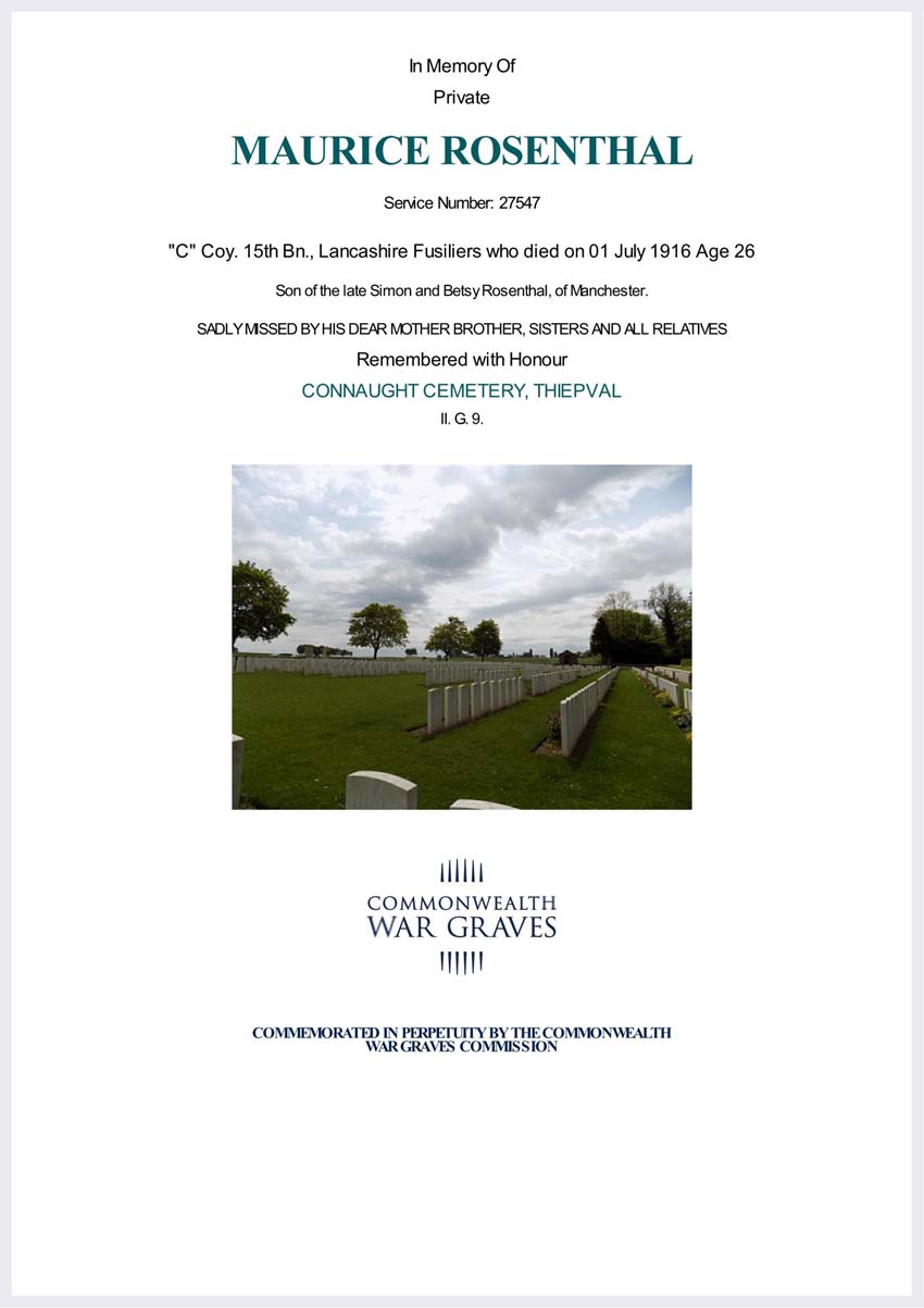 ROSENTHAL OF 'C' COMPANY, 15TH BATALLION LANCASHIRE FUSILIERS