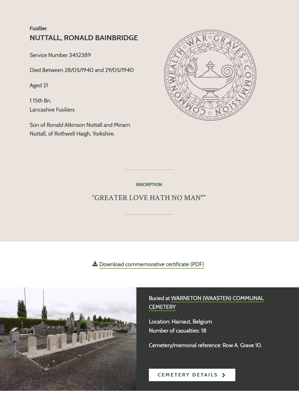 Fusilier Ronald Bainbridge Nuttall, 3452389