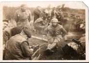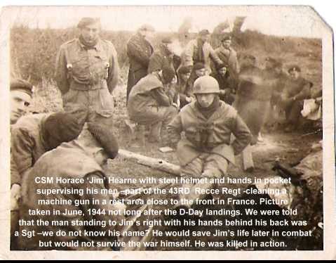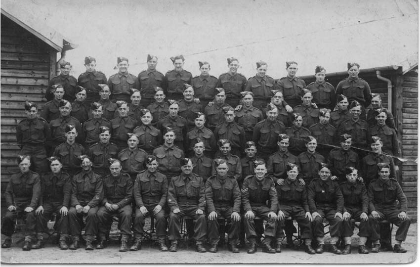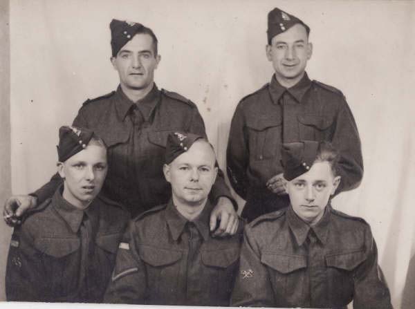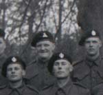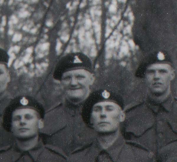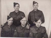 Sent in by Trooper Robb. There is a trooper G Robb listed in the 1/5 LF (108 RAC) 1946 booklet as a member of HQ Sqn, so I believe him to be the same individual. His regimental number 7881646 indicates that he was RTR. Not surprising as once converted to RAC an influx of experienced RTR trooper, NCOs, WOs and officers came to bring their expertise to the converted infantry battalions. As you will see from the photo he is still wearing the LF cap badge he wore when in 108 RAC. It is an extract form a group photo of G Wing, 100 OCTU (Sandhurst) taken in April 44. By the way on that very interesting list in the 1946 booklet I found at least three ex 108 RAC officers: Lt Clark, Hird and Moxon who were KIA in 1944 serving in armoured regiments. One in Italy and two in N.W.E. 1. Set of photos linked to Corporal J G Hofton. You might be interested by the following to add to your site. There are photos of the MT section of 1/5 Lancs Fus taken sometime between I believe end of 1940 and before conversion to a RAC regt i.e end of Oct 1941. In fact I noticed that it is the photo listed in your 2bn section. I can say that because the photo I am sending you is on a frame with at the top the mention "1/5 Lancashire Fusiliers MT section". To get a better resolution I unframed it. The title is attached if you can reunite them. The reason for those dates is the fact that some of them on the photo are wearing the 42 Inf Div flash, a red Arm of service strip for 125 Inf Bde and the bn flash (difficult to see but badges are there when using a magnifying glass). Set of badges which were not worn as such before end of 1940 early beginning of 41. But I am opened to any other information. Fourth row extreme right is J G Hofton. By the way I would be interested if you had any information on Platoon Sergeant Major (WO III) F Hawkins and the two sergeants seated in front. They were probably either regulars coming form an active LF Battalion or were recalled to the Colours! PSM Hawkins hs at least two ribbons (India?). 2. Photo of five Fusiliers. Fusilier (then) 3451299 J G Hofton is front row extreme left. He is listed in 108 RAC booklet as C Sqn. His AB 64 mentionned him qualified and employed as a Motor Mechanic. He was by trade as a civilian a lorry driver. Something less common in 1939 than to day. 3. The man in the middle front row is (to be confirmed) 3456815 Fus W Furnevall. He is also listed in the 1946 booklet as HQ Sqn 108 RAC. Extreme right is 3457314 Fus E L Thomas. Listed as HQ Sqn 108 RAC. Standing behing Thomas is Fus 3452335 C Button , listed in HQ Sqn 108 RAC. I could not identify the last man. The four identified men are in the large picture. 4. Photo of Fusiliers J G Hofton probably taken early after joining given the way he is dressed i.e. BD blouse a bit loose and not very well fitted. Once published in February 2009 I will forward to you a copy of the magazine. The article is not specifically around the Lancashire Fusiliers but I believe will interest you as it is part of the history of the Infantry battalions during WW II which has been quite forgotten. Hoping that it is of some interest to you |