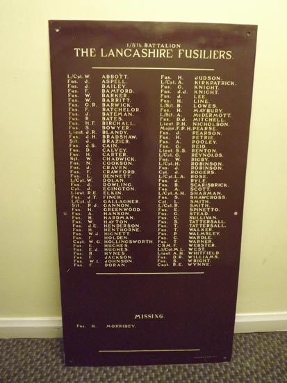 This was sent to us by Salford War Memorials trust ( SWARM), probably used to hang in the drill hall at Cross Lane salford, the home of the 8th Bn.