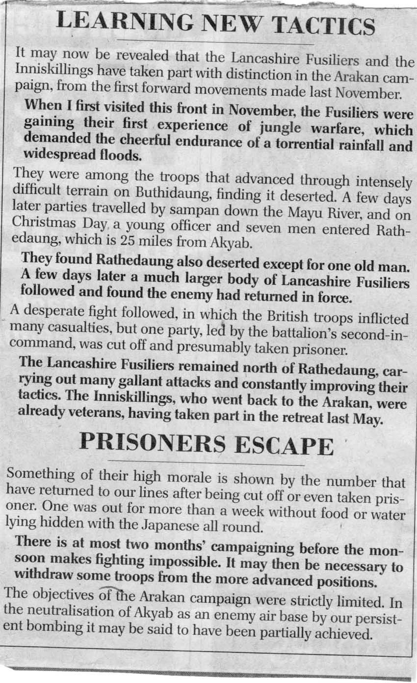 Fusiliers at Kigwema, 1st July and fought with them from the Burma