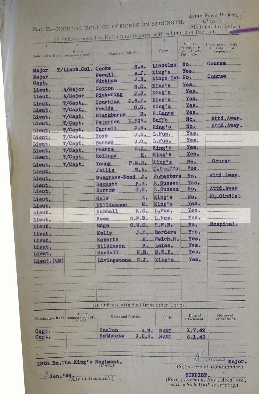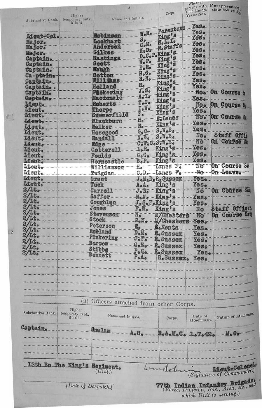 hill post, 7th March 1943 appointed to command 1/8th Battalion Lancashire