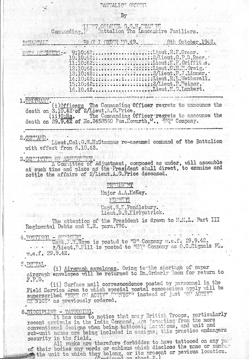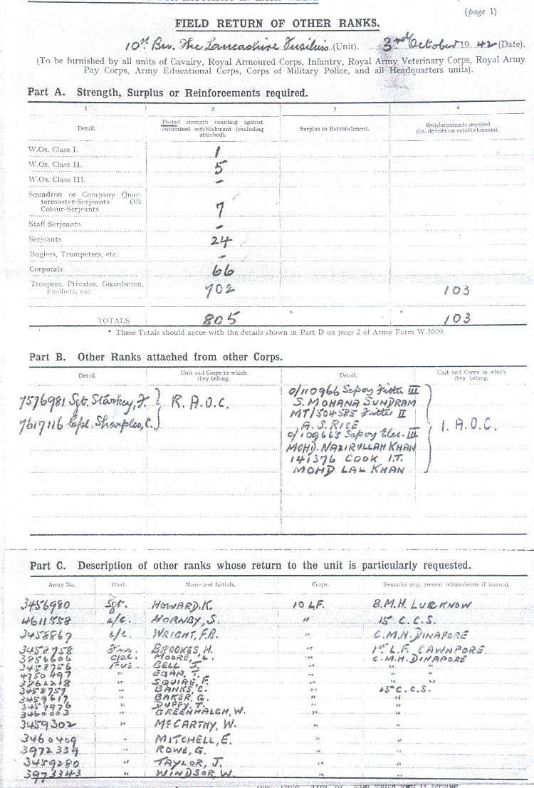 Thornley A.E. Fus. 3458893 Recorded MIA on 27.12.42.
