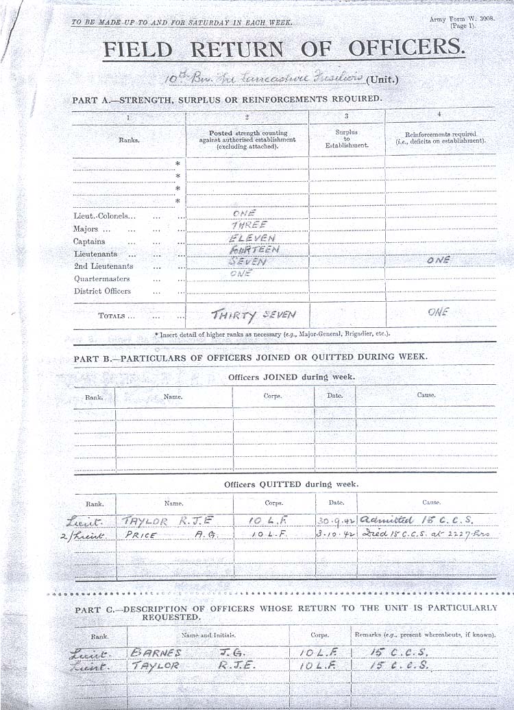 Reidy P.Fus. 3459740 Wounded 9.1.43. Later died from his wounds
