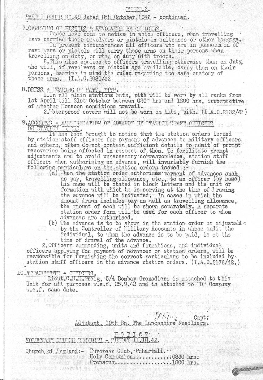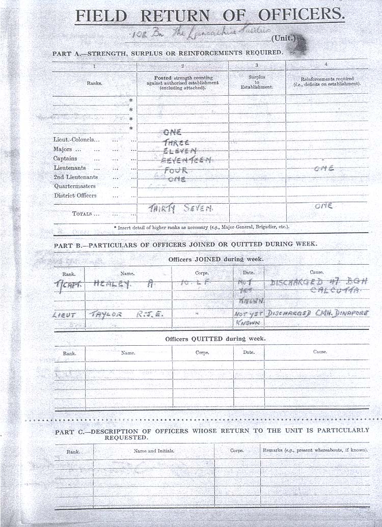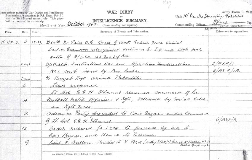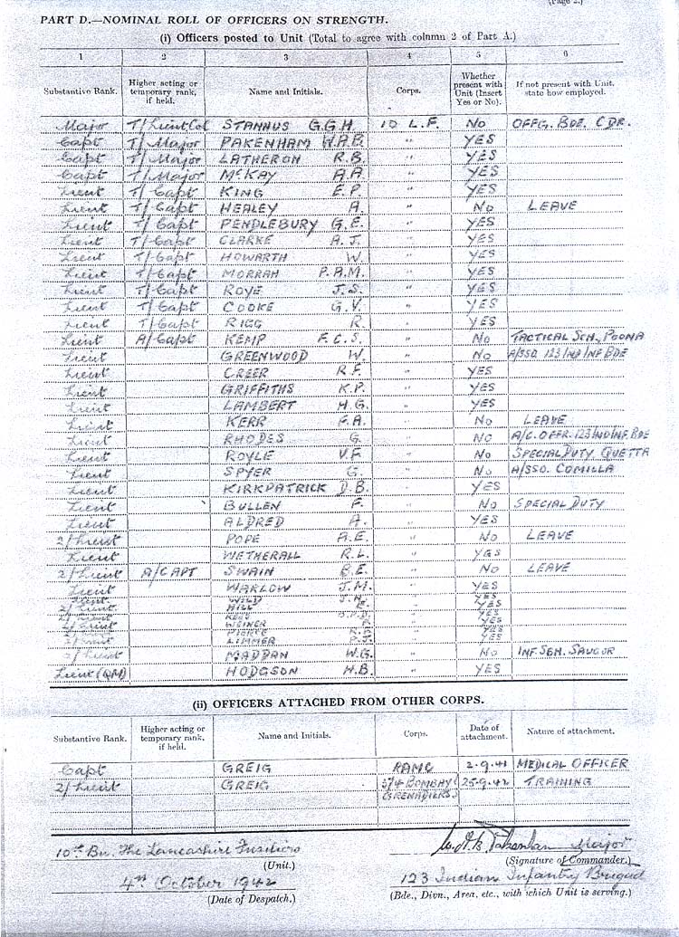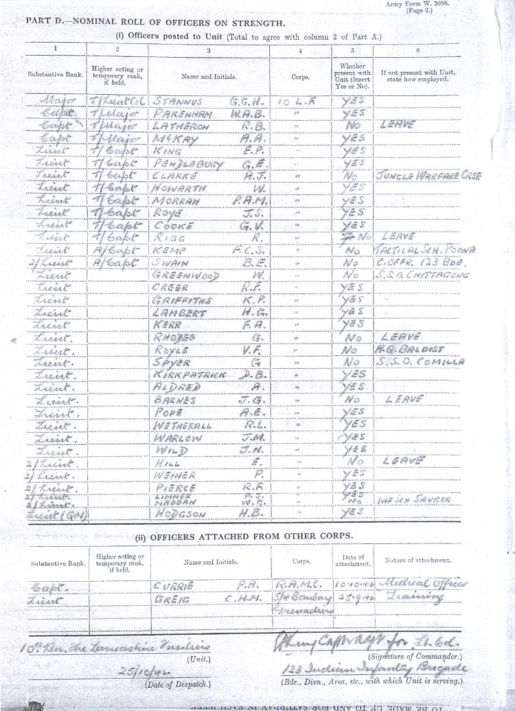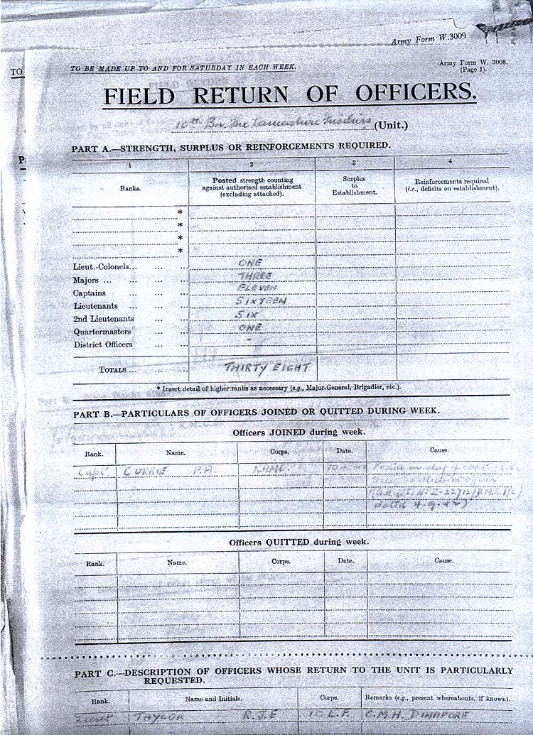 Stannus G.G.H. Lt. Col. Commanding Officer 10th Battalion The Lancashire