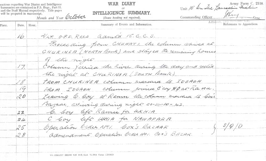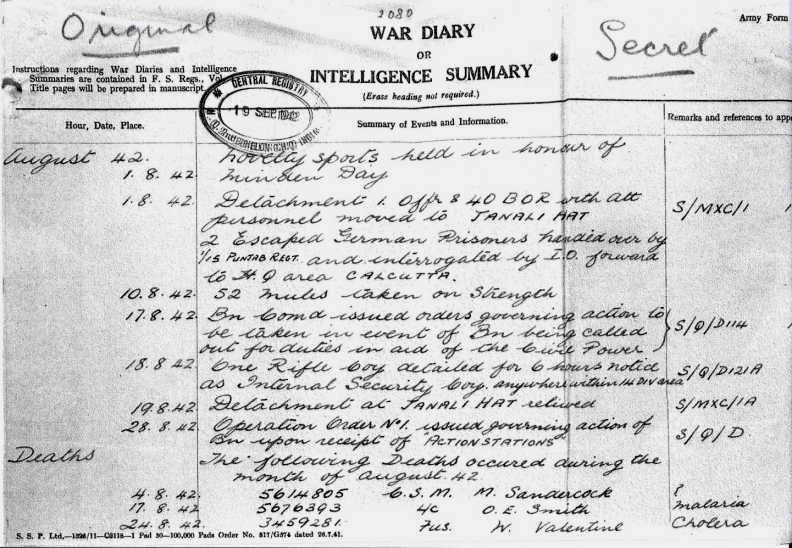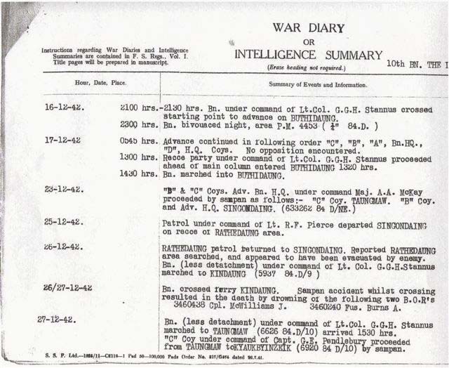 Richardson C. Fus. 3460154 KIA Diary entry 30.12.42