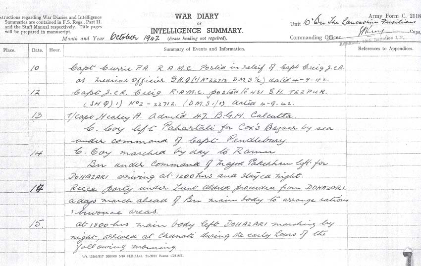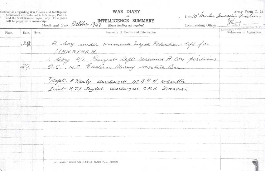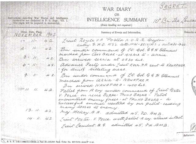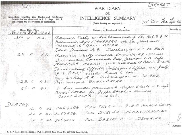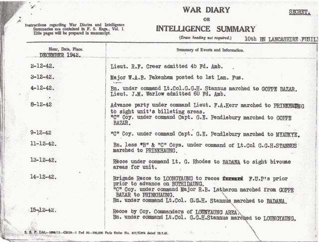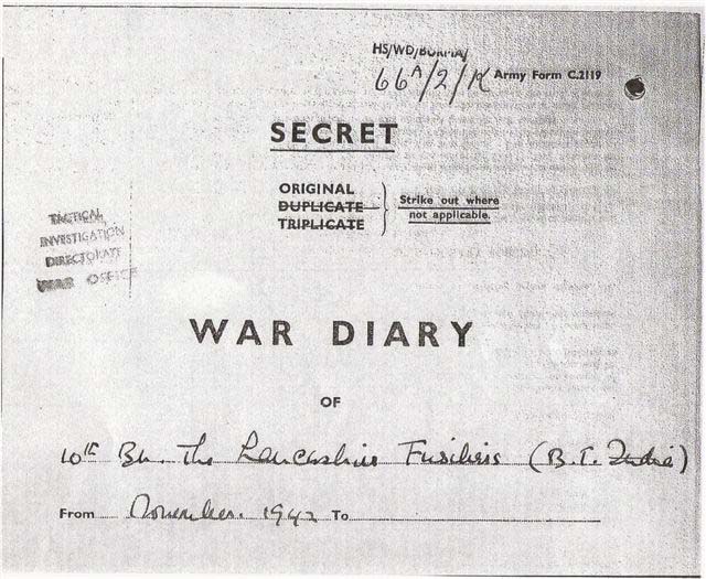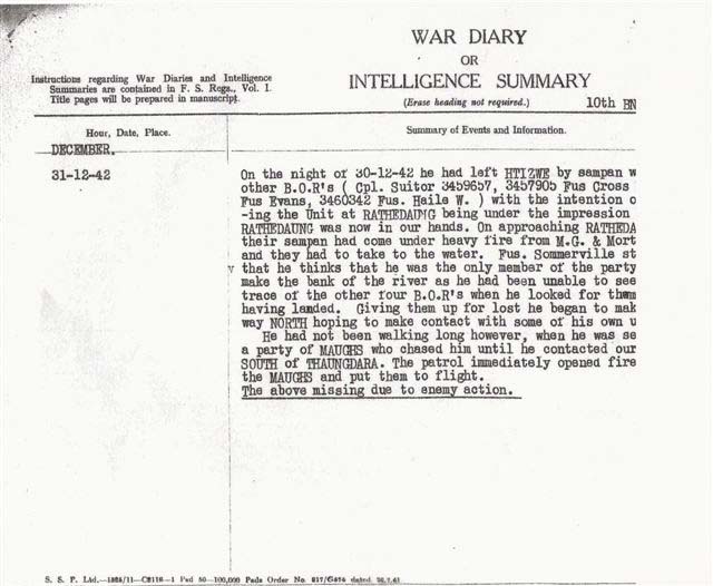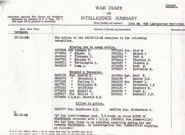 Wilkinson W. Fus. 3457761 Wounded. Diary entry 30.12.42