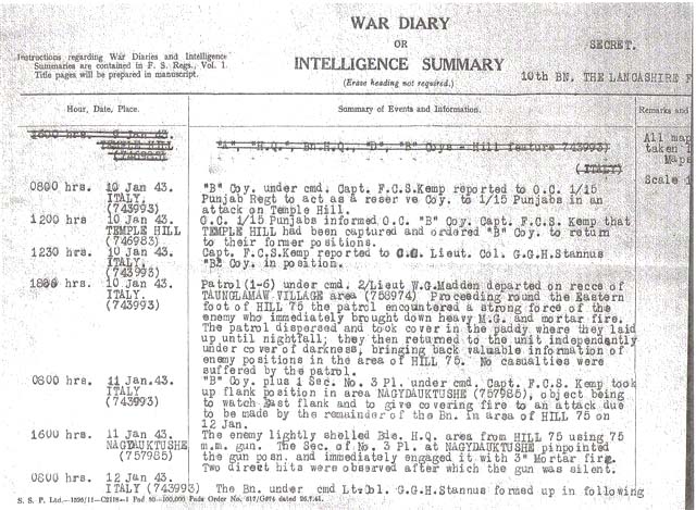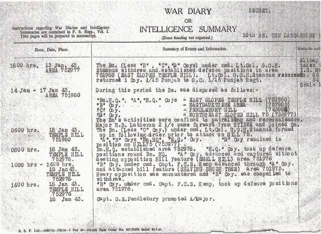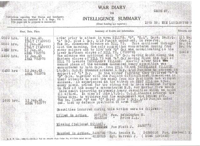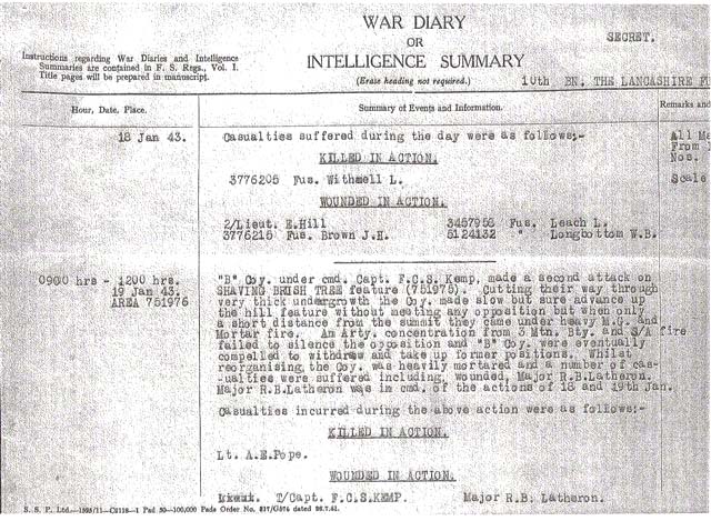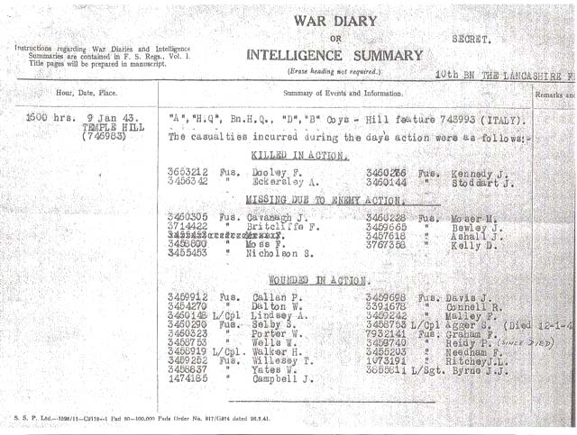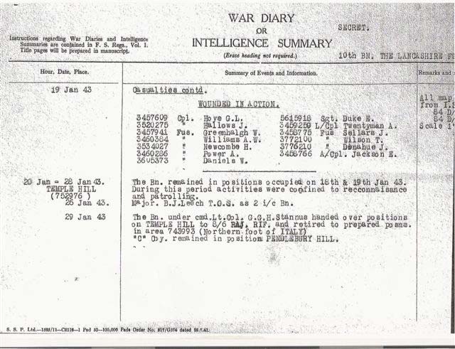 Sellars J. Fus. 3458775 Wounded 19.1.43.