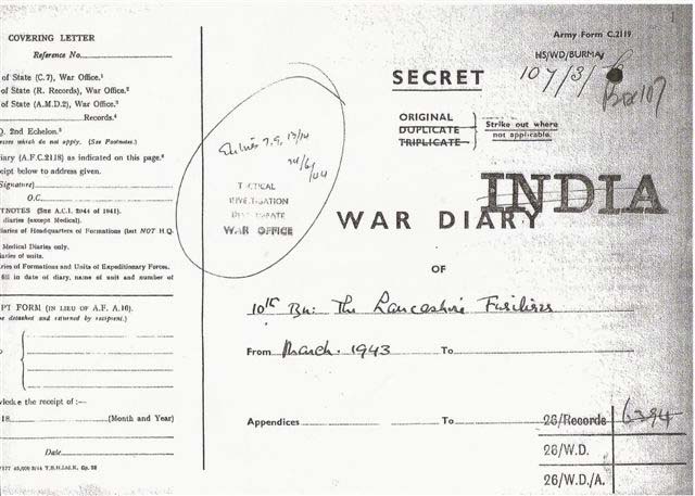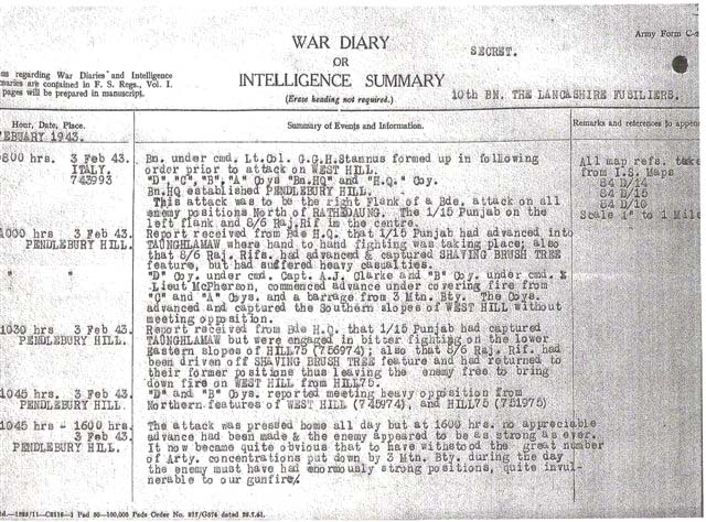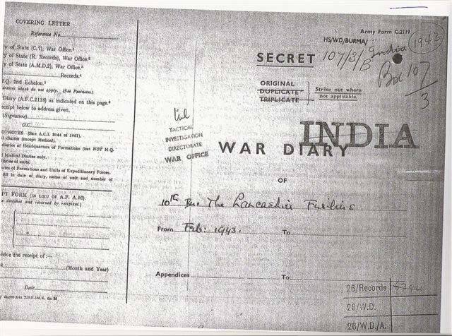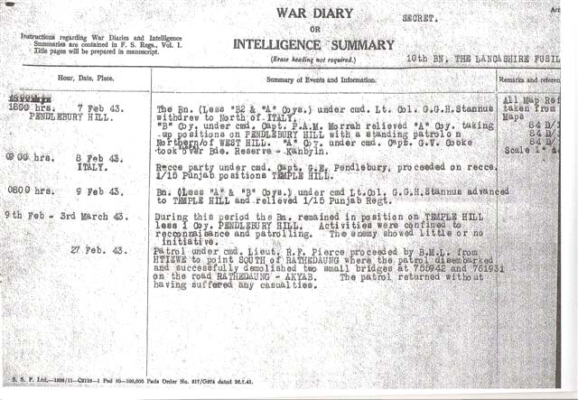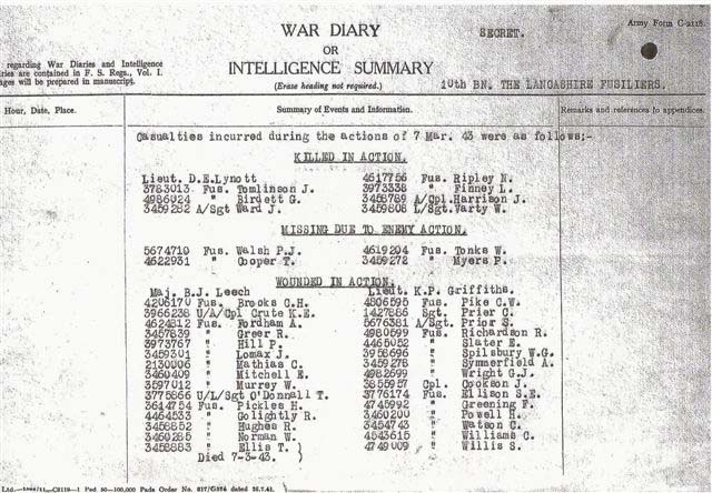 Spilsbury W.G. Fus. 3958696 Wounded 7.3.43.