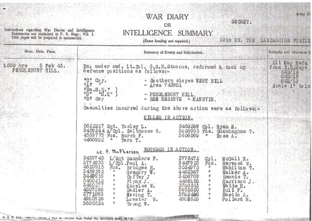 Rennie T. Fus. 3456709 Wounded 3.2.43.