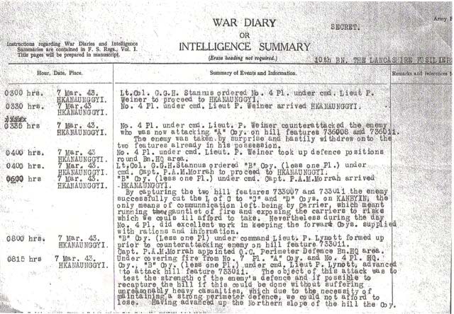 Weiner P. Lt. Diary entry dated 7.3.43.