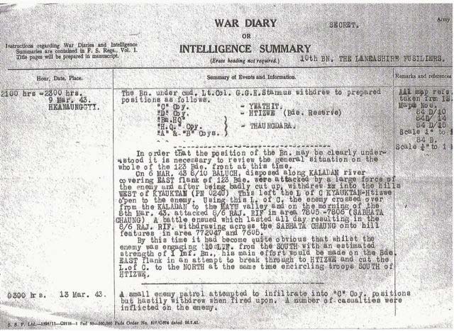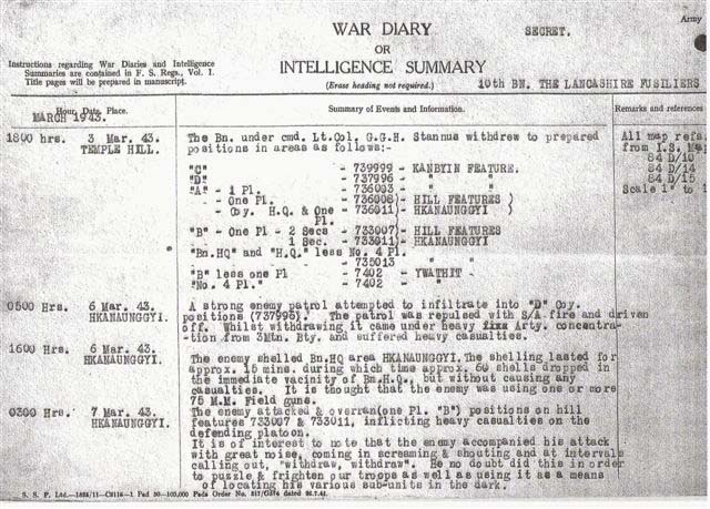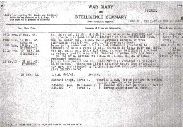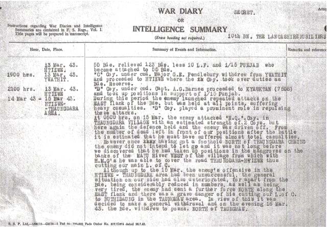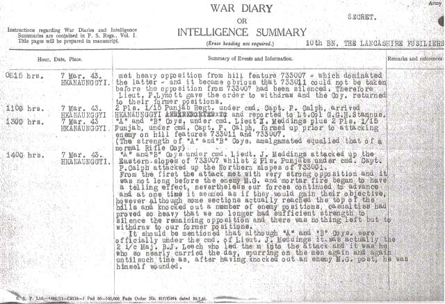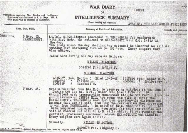 Watkins V.M. Lt. Wounded Diary entry 16.3.43.