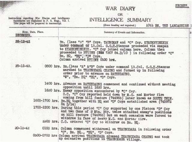 Snaith S. Fus. 3460176 Wounded. Diary entry 30.12.42