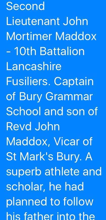 their own lines. 13 out of 15 officers and 226 other ranks were casualties. As the attack was a failure, the dying men were left in no mans land as it would have been too dangerous to bring their bodies in for burial, which would explain why 95% of the dead from this battalion who died on this day, have no known grave, the three Middleton men are among those whose name is commemorated on the Arras Memoria |