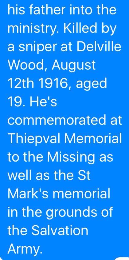 Fusiliers, was killed on July 7th, 1916. Private Fred Halls burial plot must have been lost again in further fighting as hes commemorated on the Thiepval Memorial to the Missing. |