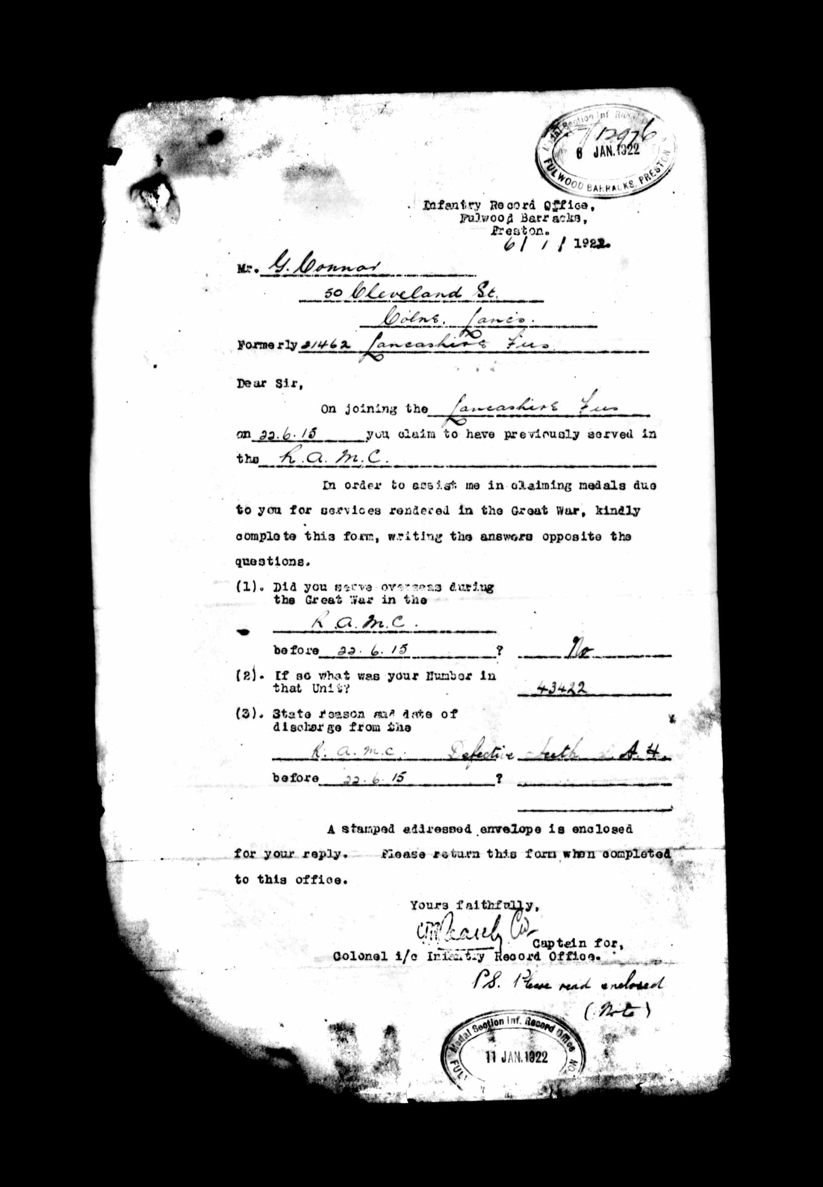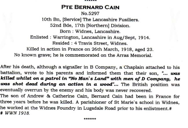 Lane, Hebers, and was serving with the 10th Battalion of the Lancashire